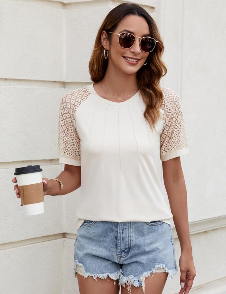 • أكمام راجلان من الدانتيل: أكمام التي شيرت الجذابة مصممة بالدانتيل، وهو لطيف وعصري.