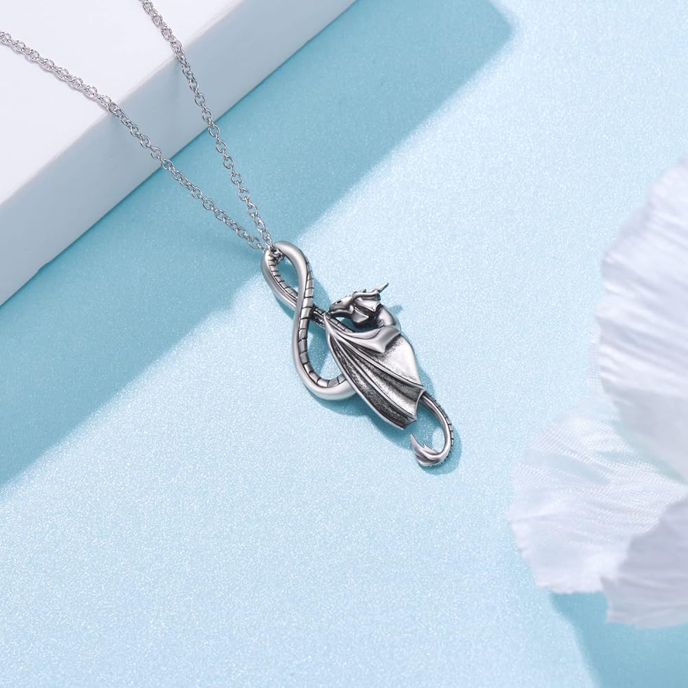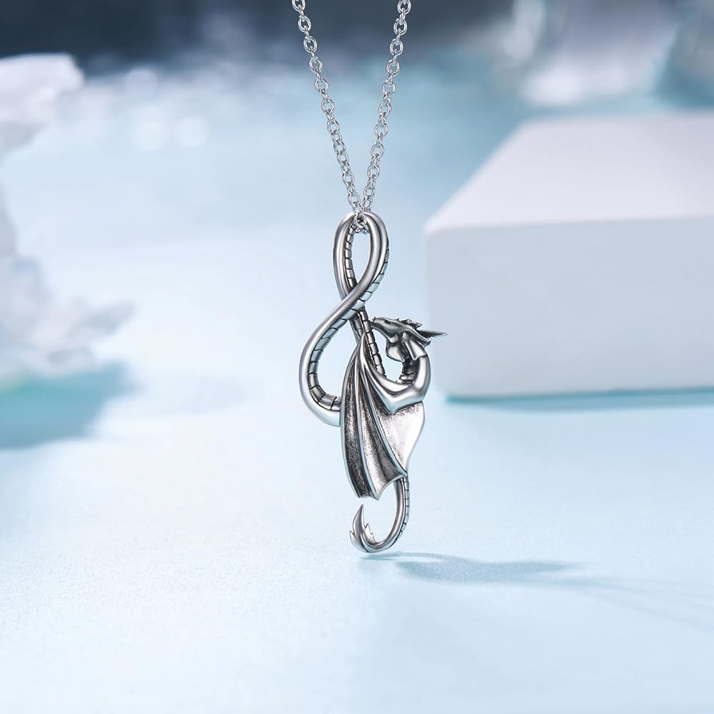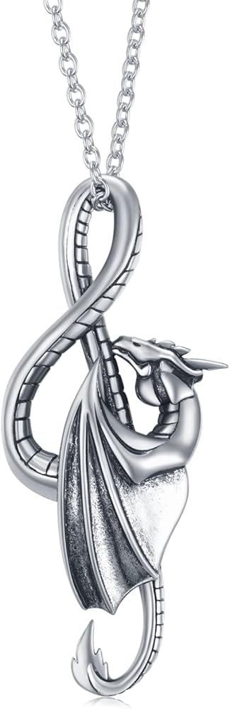 【تصميم فريد】التنين هو رمز للثقافة الغامضة القديمة، هذه القلادة هي مزيج من التنين والنوتات الموسيقية، ترمز إلى الإيمان والحب. مع تصميم مركب، هذه القلادة مناسبة لكل من الرجال والنساء. إنه أنيق وساحر وكلاسيكي.