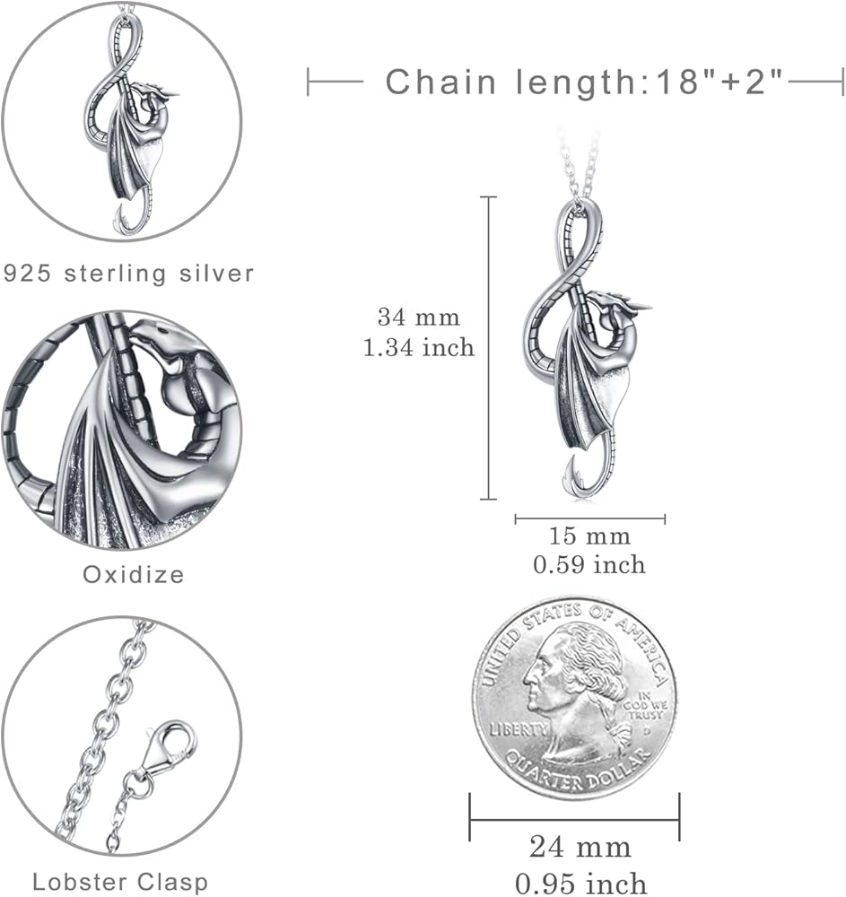 【المادة】قلادة التنين الموسيقية مصنوعة من الفضة الإسترلينية عيار 925. خالية من الرصاص والنيكل، لا تسبب الحساسية وآمنة على البشرة الحساسة للنساء.