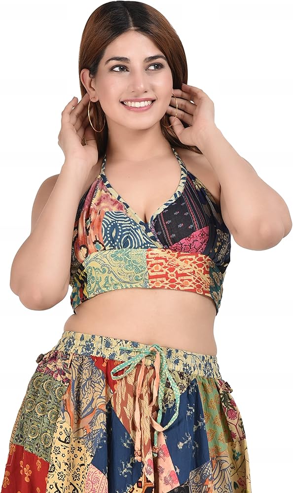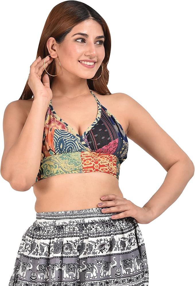 Indian Clothing Cotton Boho Patch Work Hippie Summer Halter Tops For Women Tops Choli For Women Natural Soft Cotton One Size Fit All Just Tie in the Back