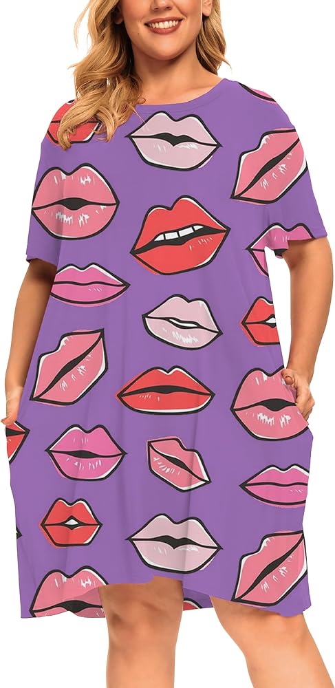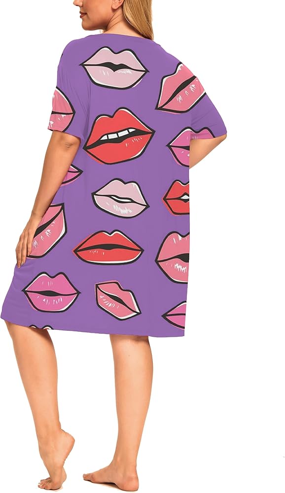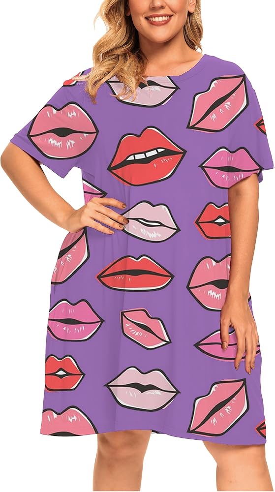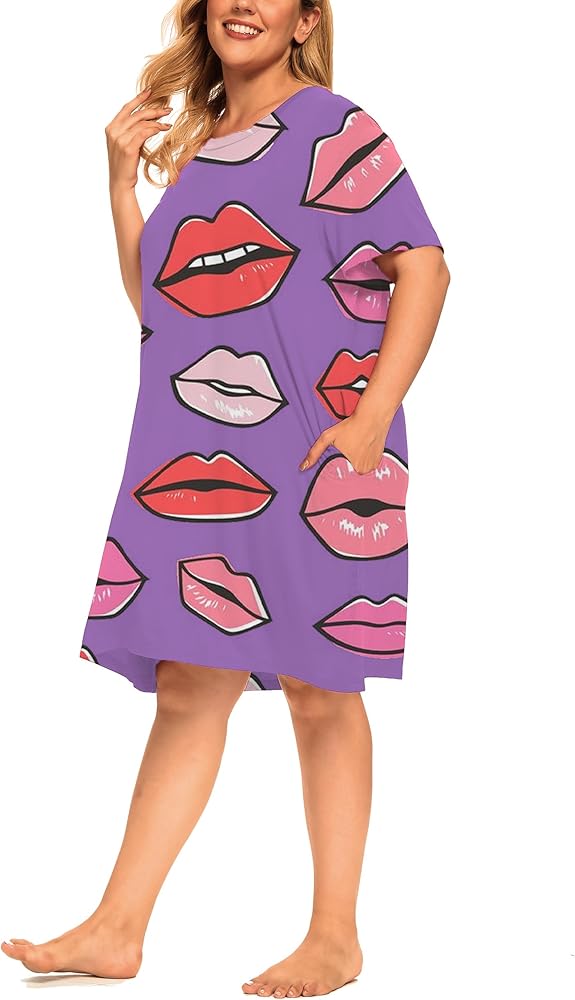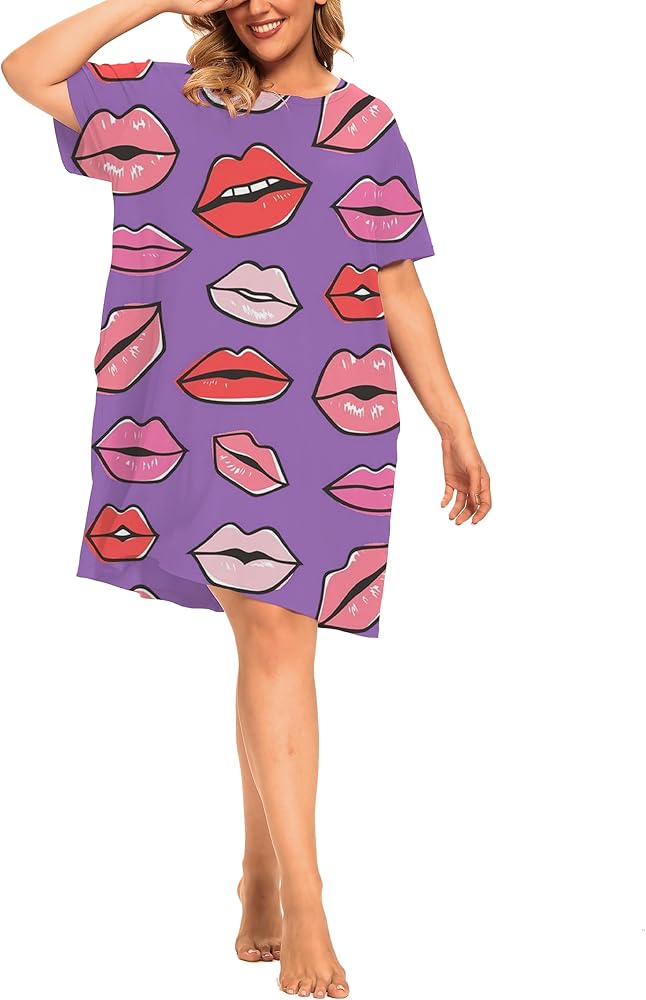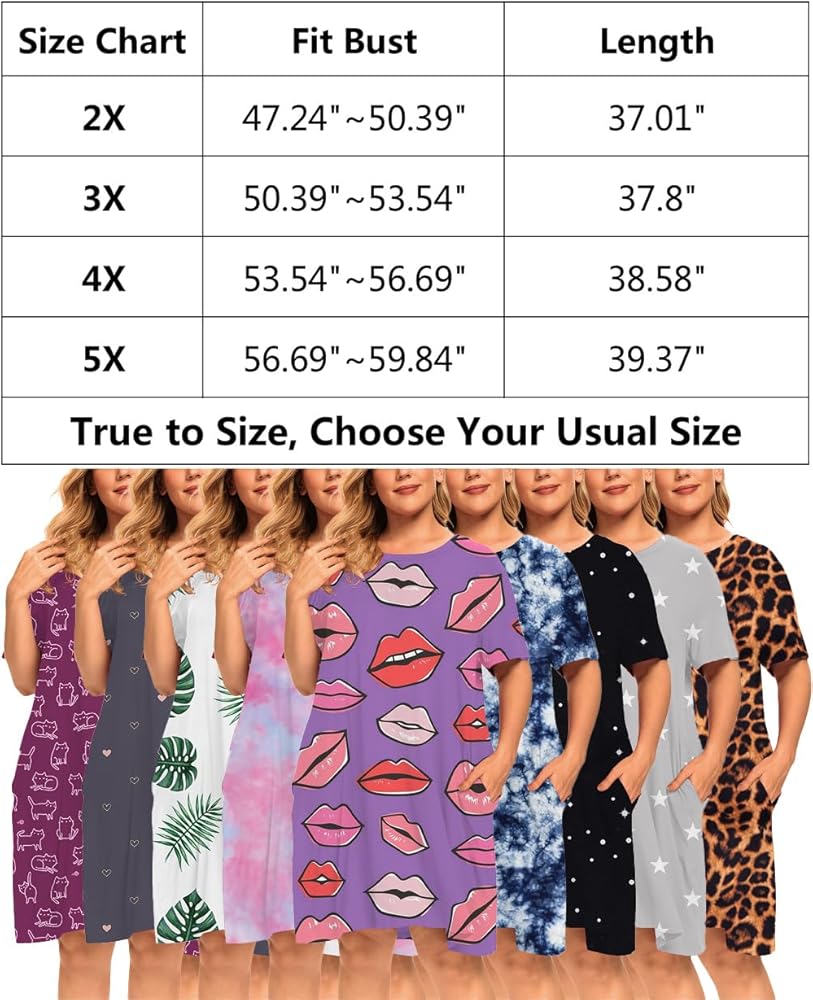 【المميزات】ملابس نوم بمقاس كبير تتميز بأنماط مطبوعة مختلفة لطيفة، رقبة دائرية، أكمام قصيرة، طول فوق الركبة، جيبان جانبيان، قصة فضفاضة وانسيابية. فستان بسيط وأساسي للنوم في خزانة ملابسك.