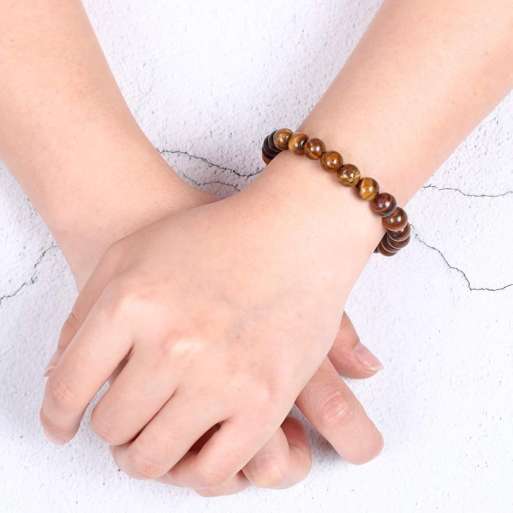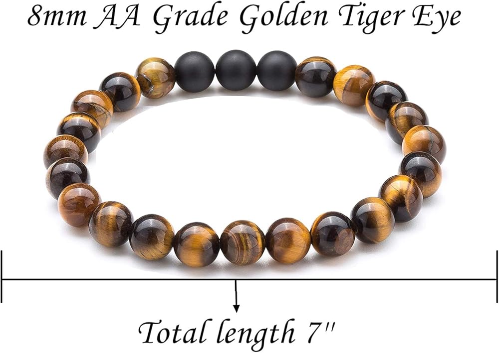 21 خرزة - خرز حجر عين النمر الطبيعي 8 ملم (حجر عين النمر حليف رائع للعقل والجسم، فهو يساعد على التخلص من الخوف والقلق؛ يوفر الشجاعة والثقة بالنفس؛ يحمي من الطاقة السلبية) + 3 خرزات - عقيق أسود 8 ملم (يوفر القوة لمواجهة المخاوف؛ يمتص ويحول الطاقة السلبية؛ القوة في أوقات التوتر)