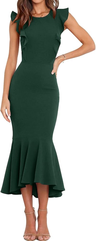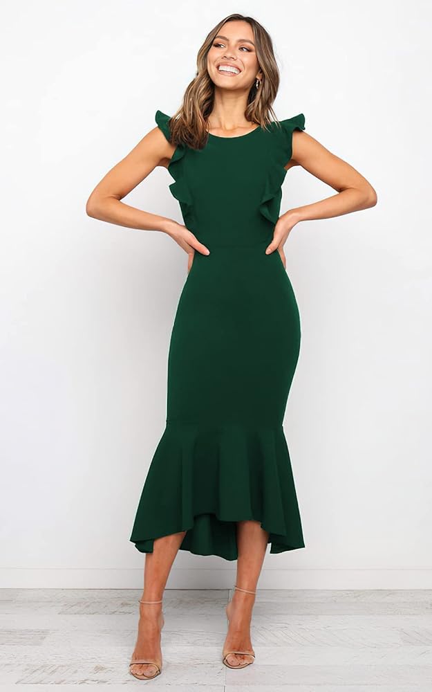 فساتين رسمية متوسطة الطول أنيقة: فساتين حورية البحر الرسمية للسيدات مصنوعة من قماش عالي الجودة مقاوم للتجاعيد. طراز أنيق وتصميم مناسب يحسن شكل الساعة الرملية، مما يجعلك تبدو أنيقًا وأنيقًا!