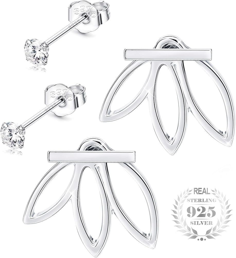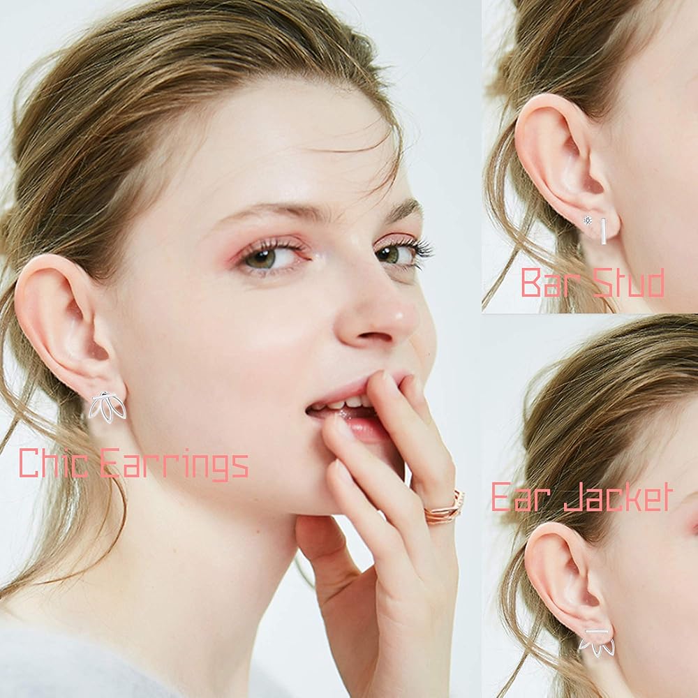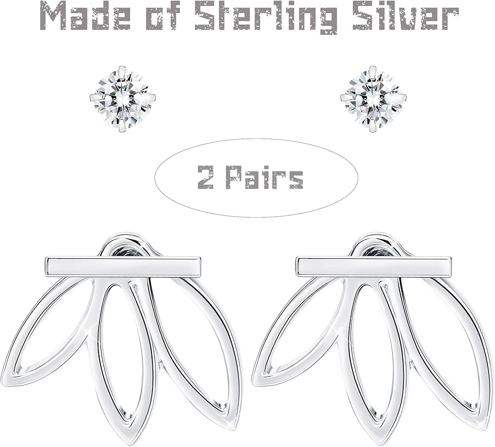 [تصميم جاكيت أذن رائع]: زوجان من الأقراط من الفضة الإسترلينية في مجموعة. زوج واحد من الأقراط المرصعة بأحجار الزركونيا المكعبة عالية الجودة. زوج واحد من تصميم جاكيت الأذن الفريد القابل للفصل بشكل اللوتس الخاص. مجوهرات نادرة وفريدة من نوعها للنساء والفتيات. ستحصل على الكثير من الإطراءات عند ارتدائها.