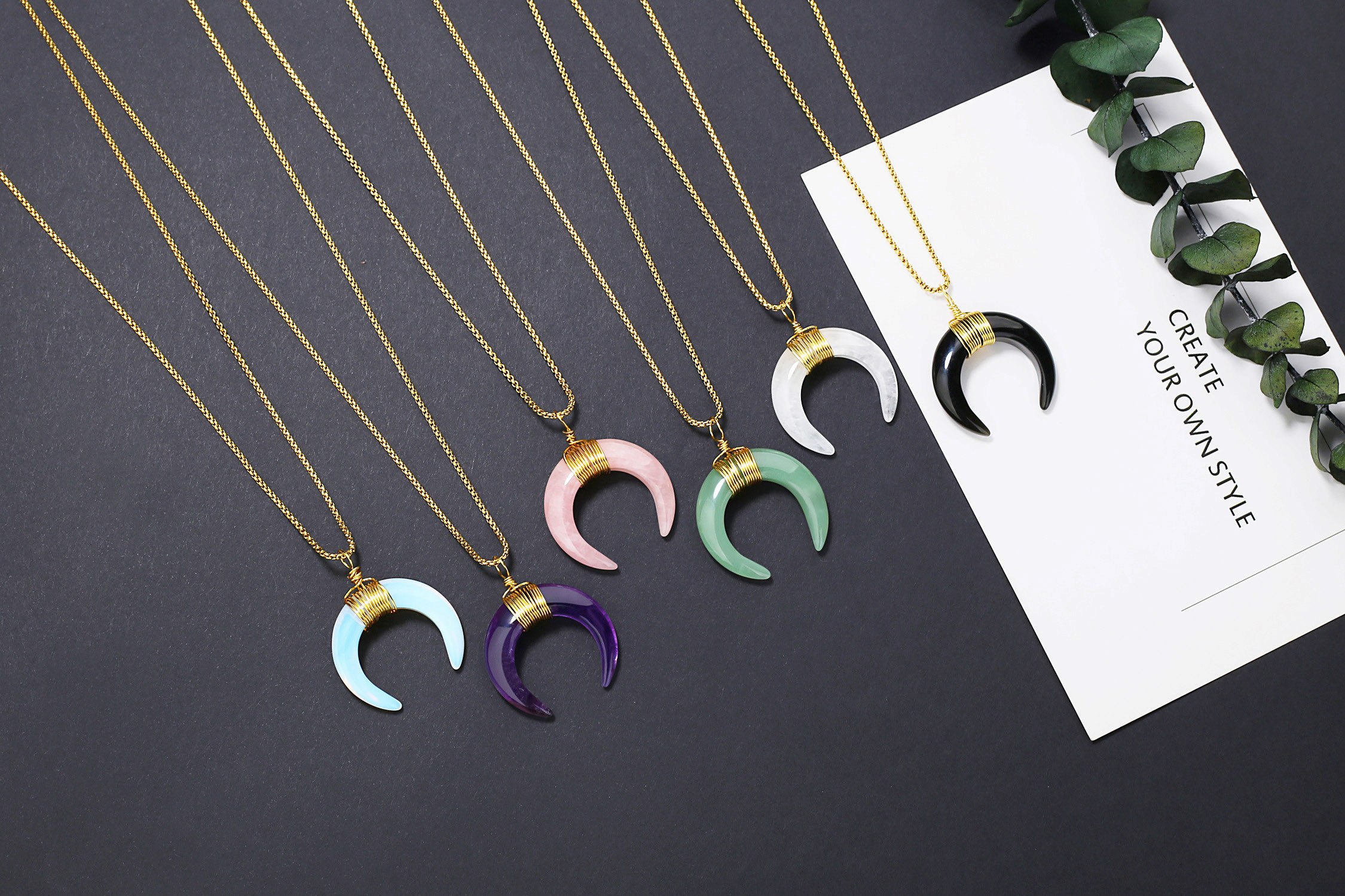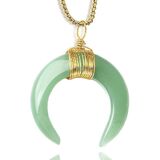 [قلادة الهلال]: اعتقد اليونانيون القدماء أن مراحل القمر تمثل تغيرات الحياة والموت. ويعتقد أيضًا أن القمر في حالة الهلال يصاحبه إنبات اللاوعي، مما يمكن أن يؤثر على سلوك الناس، ويحسن إلهامهم وصفاء العقل. هذه القلادة المتدلية من حجر الكريستال على شكل هلال القمر، مصنوعة من الكريستال الساحر الطبيعي، غنية بطاقة علاجية معينة، ارتديها لتحسين جودة جسمك وحياتك!