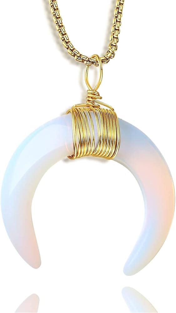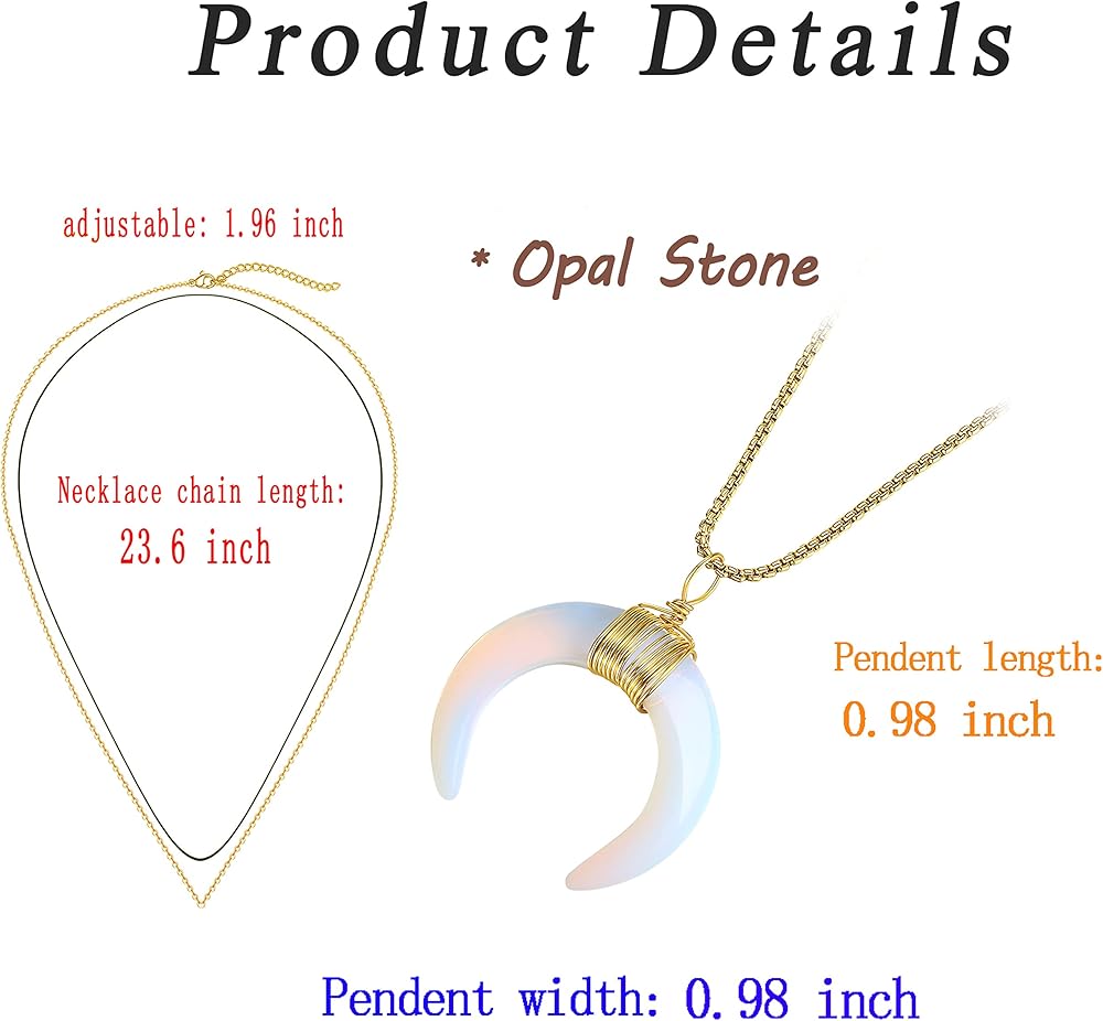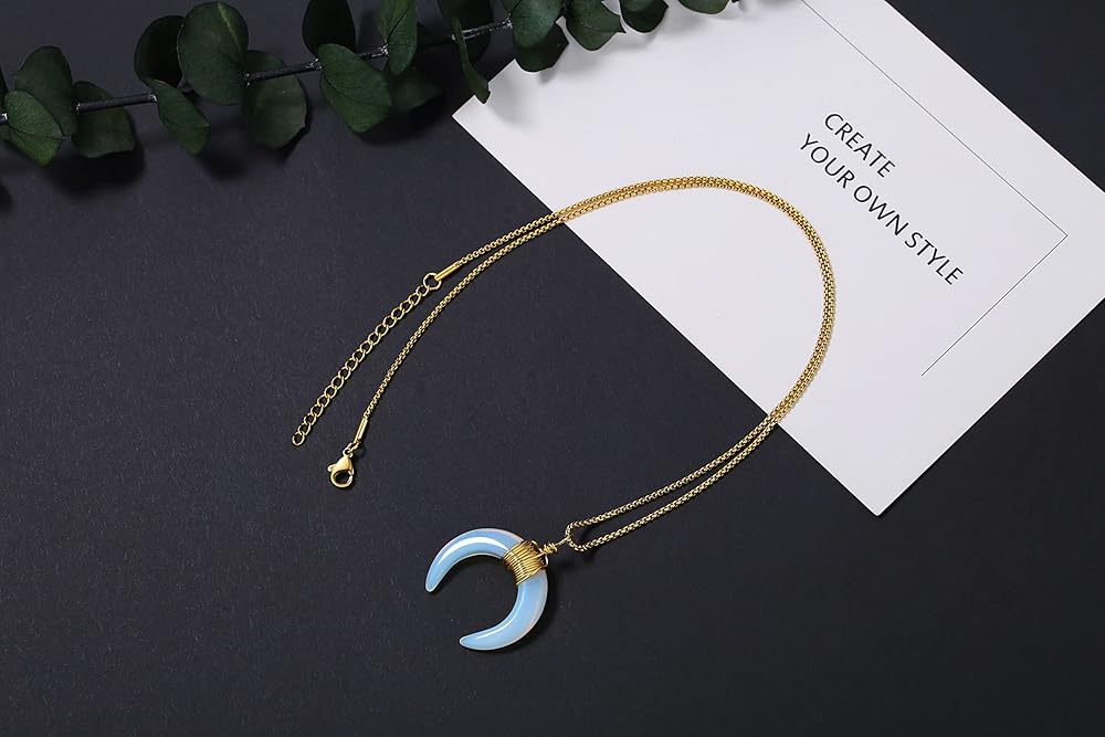 [قلائد للنساء]: تصميم هذه القلادة المتدلية من كريستال القمر بسيط وجذاب، ومواد الكريستال الساحرة تجعلها فريدة من نوعها، مع قلادة سلسلة ذهبية مناسبة للنساء والفتيات والأم والزوجة والأصدقاء الجيدين. أو هدية روحية مثالية لحفلات أعياد الميلاد، والهالوين، والكريسماس، والذكرى السنوية، وعيد الأم، وعيد الحب، والتخرج.