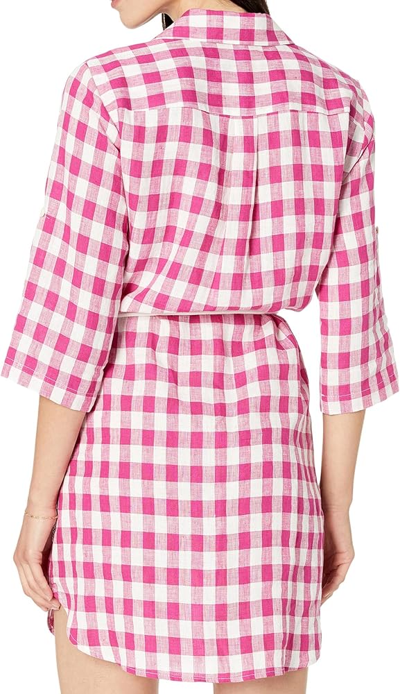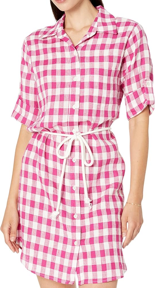 Stay polished from day-to-night in a lightweight linen blend silhouette finished with a waist-cinching tie belt and roll tab cuffs for a sophisticated look.