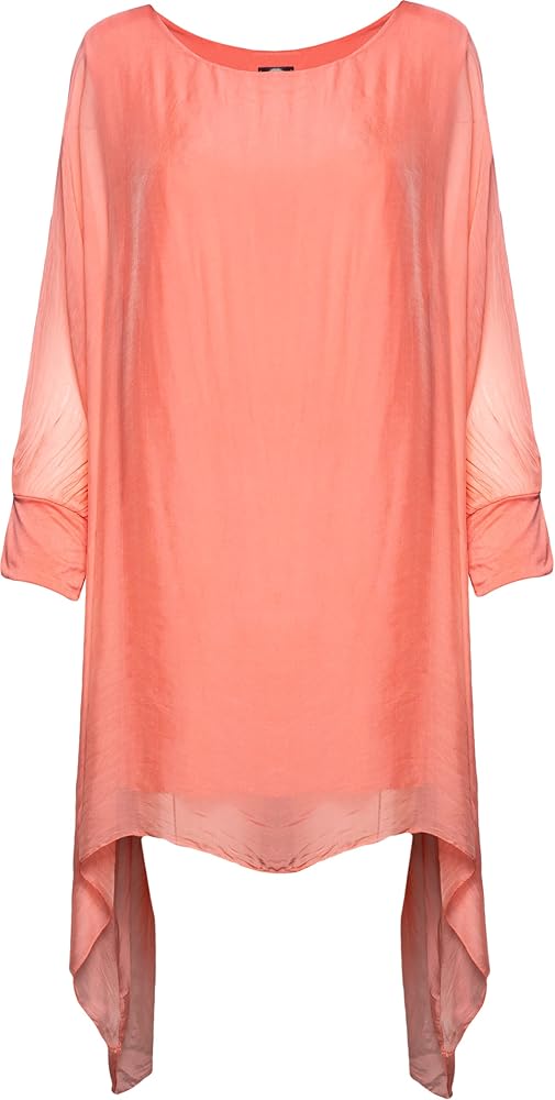 From M Made in Italy - This Scoop Neck Shift Dress Featuring: Balloon sleeves, scoop neckline, fitted cuffs, a floaty feminine fit, delicate and flowy fabric, a polished style, sidetail hem, pull-on-style, solid color, a figure-flattering style