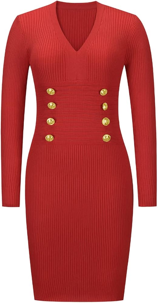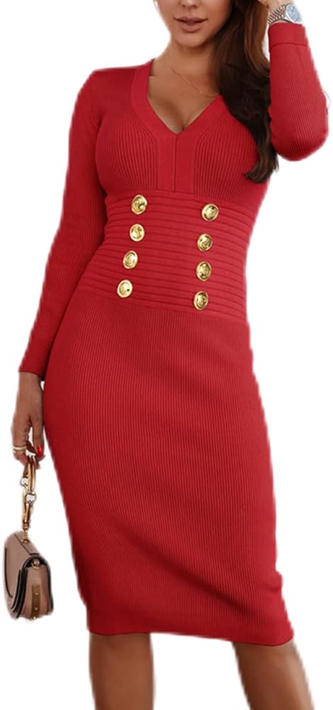 Occasion: This buttons deep v-neck sweater dress is perfect for casual wear, work, business, formal, wedding, birthday, annivrsarry,engagement and any other special occasion.