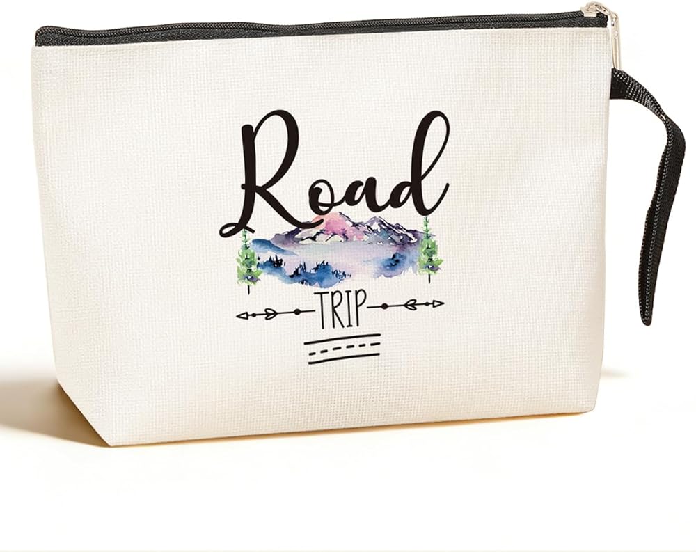 المواد: مادة بوليستر متينة وناعمة. حقيبة مكياج بسحاب مع اقتباس وطباعة جميلة على السطح.