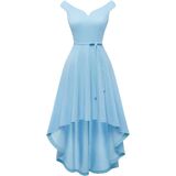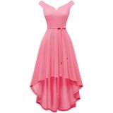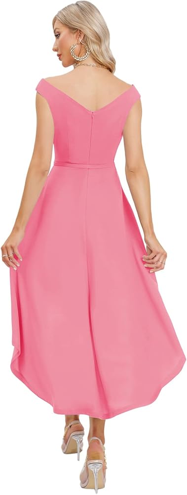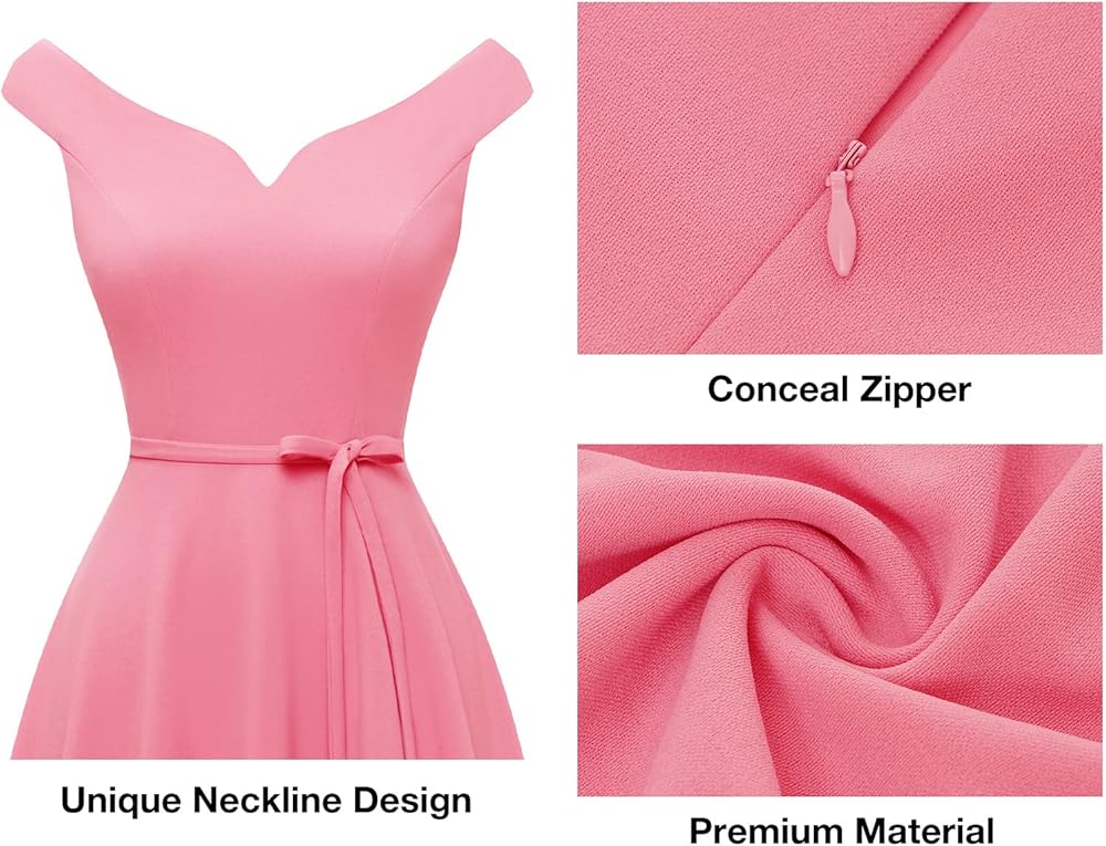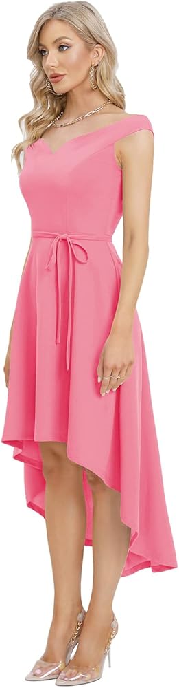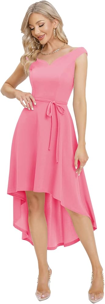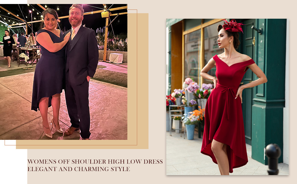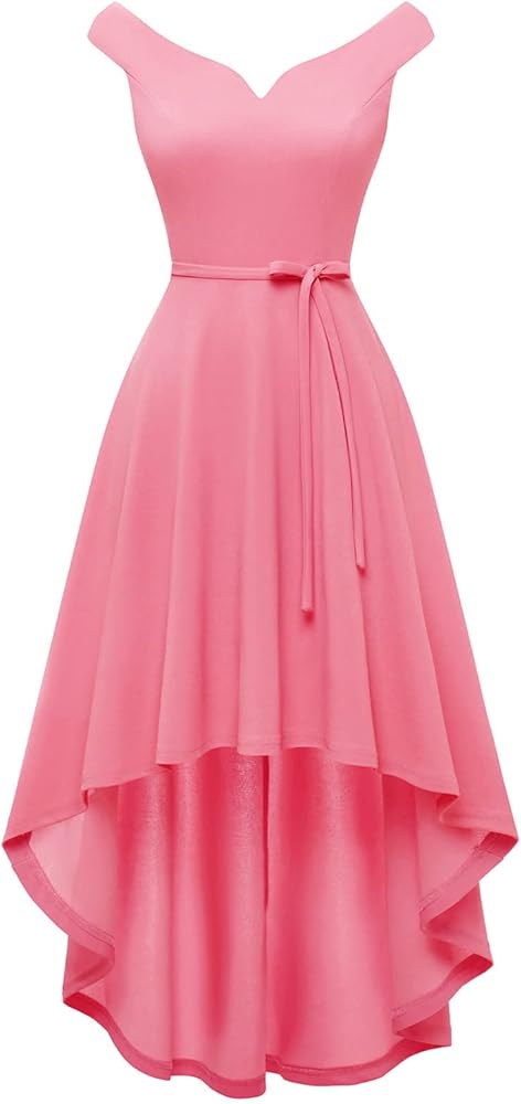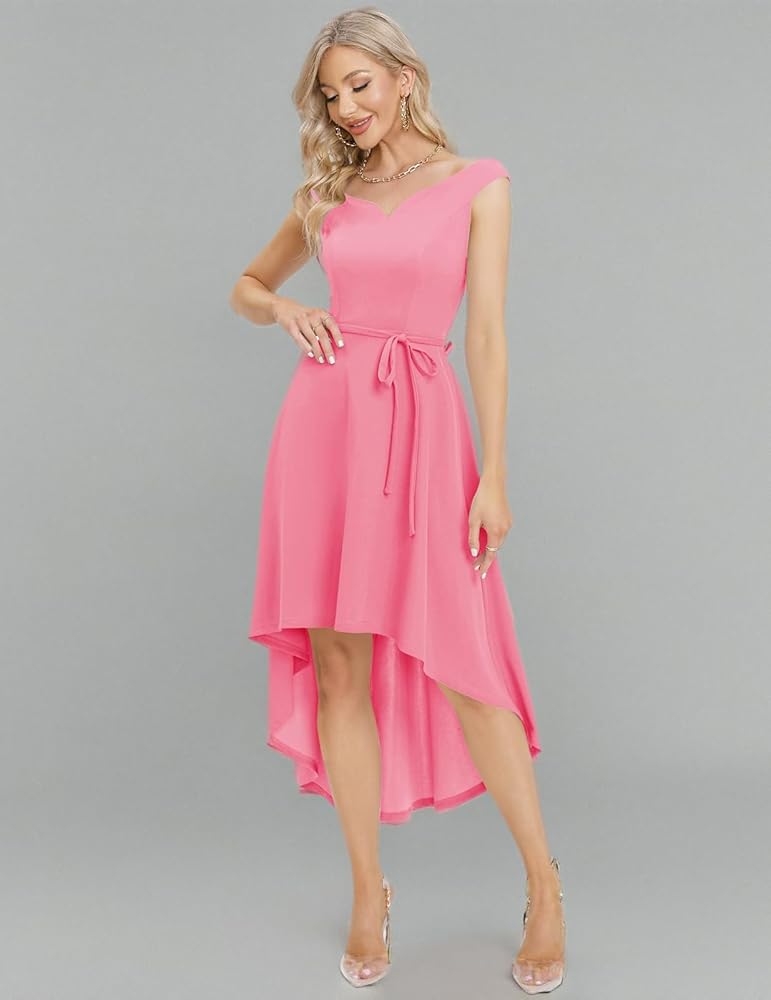 [المميزات]: يأتي الفستان الفاخر مع أكتاف مكشوفة، وحاشية فريدة عالية ومنخفضة، وحاشية غير متماثلة، وأرجوحة واسعة وحزام قابل للتعديل. تتميز فساتين الحفلة القصيرة بأنها منخفضة من الأمام ومرتفعة من الخلف.