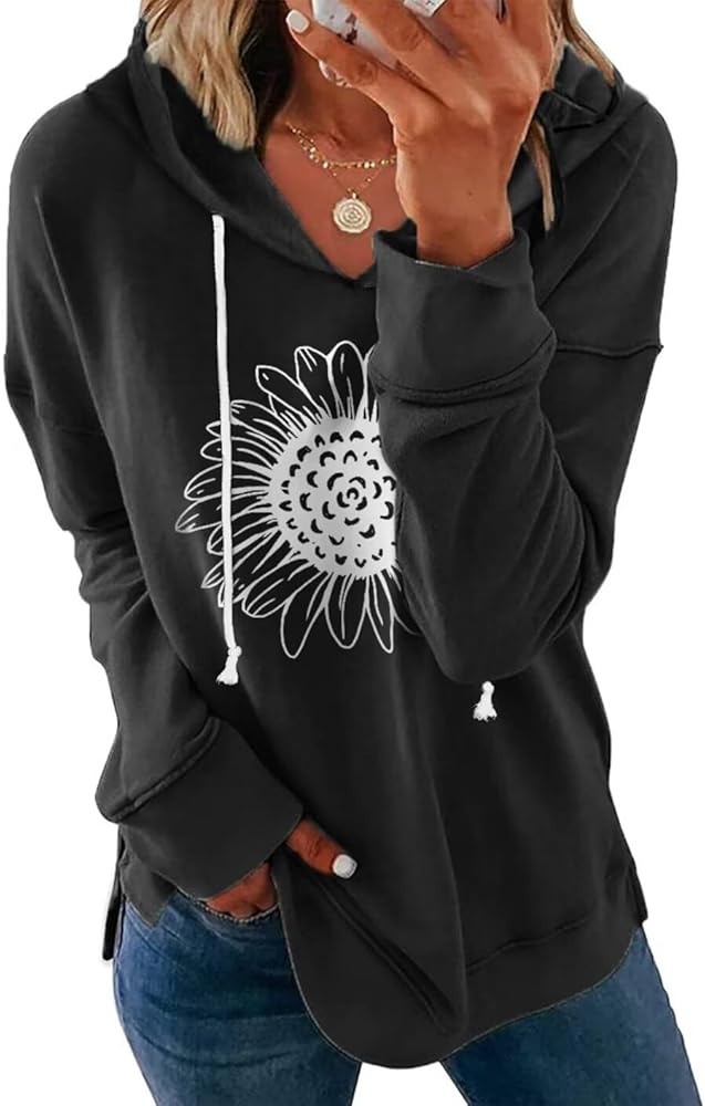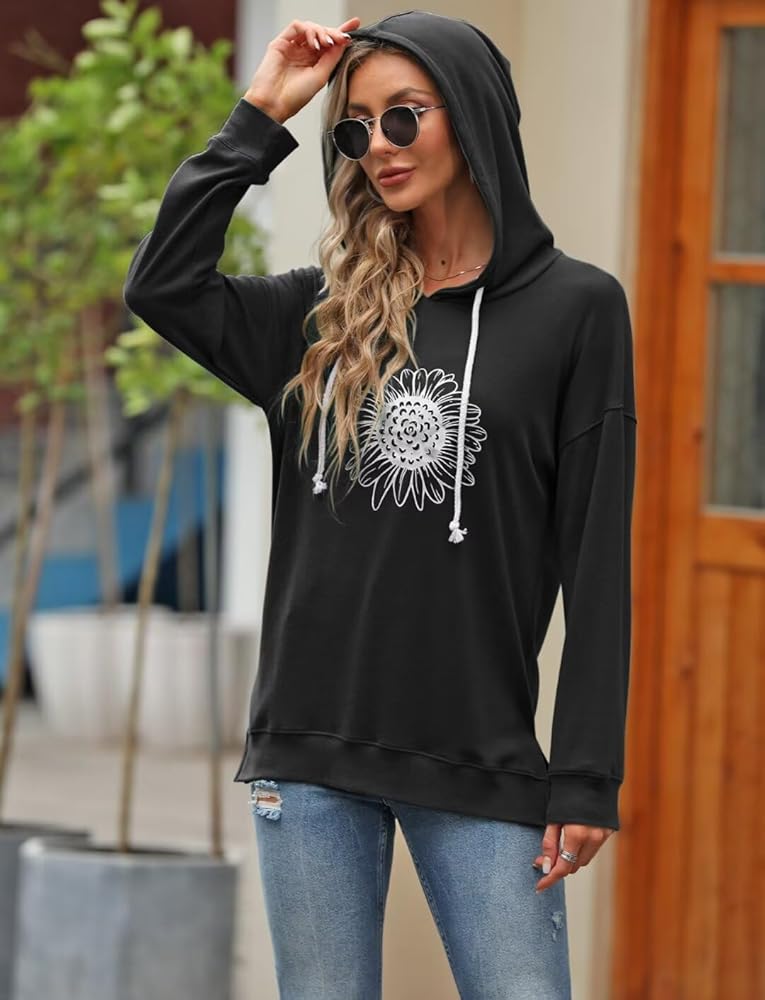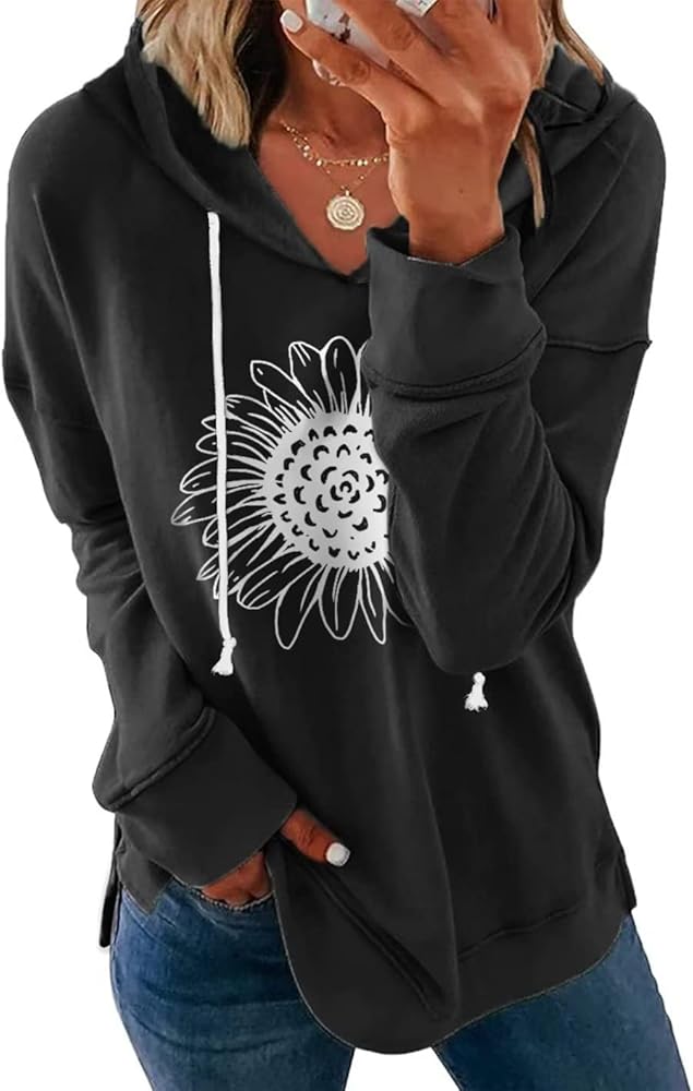 Special Designs - Sunflower cute print design makes this sweatshirt fashion and unique. Drop sleeve design is easy to create a oversize style. The drawstring hoodie can warm your head in cold winter. Side split design make this shirt more casual and special.
