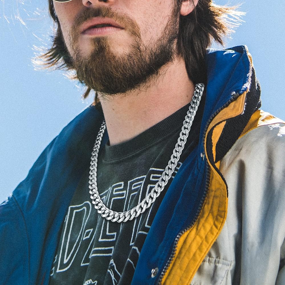 سلسلة كبح كوبية: قلادة السلسلة الكوبية يمكن أن تظهر سحر الموضة الفريد للرجال، ولافتة للنظر. هذه القلادة تمثل قلادة يومية رائعة وتبدو رائعة مع قلاداتك الأخرى.