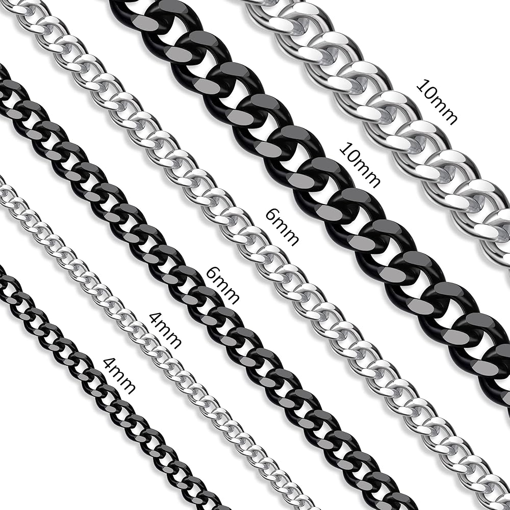 قلادة كوبية للرجال: 6 مم من الفولاذ المقاوم للصدأ مطلي بالفضة/الأسود 18/20/22 بوصة سلسلة كوبية مع مشبك متين على شكل جراد البحر.