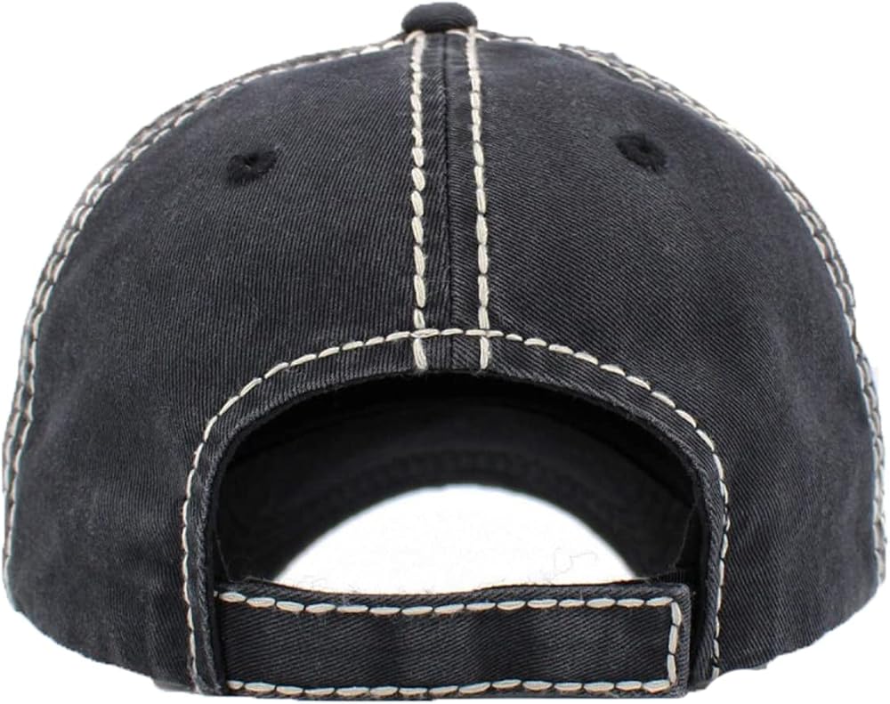 Ladies will love this distressed, vintage style baseball hat! It has a distressed patch on the front with "WINE O'Clock" embroidered. The back is solid with an adjustable velcro strap. Cap is cotton. Ladies will love to put on this cap after work or after a long day with the kids and sit down with a glass of wine and unwind. Cheers! Grab red or white wine, comfy clothes, and your cap and relax. Girlsfriends get together and drink wine!!
