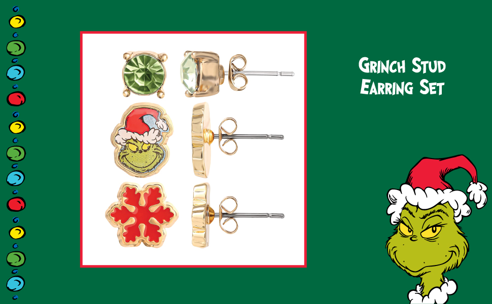 مجموعة أقراط جرينش هي هدية ممتعة للكريسماس وسانتا السري ولأي شخص يحب كل الأشياء من ذا جرينش دكتور سوس