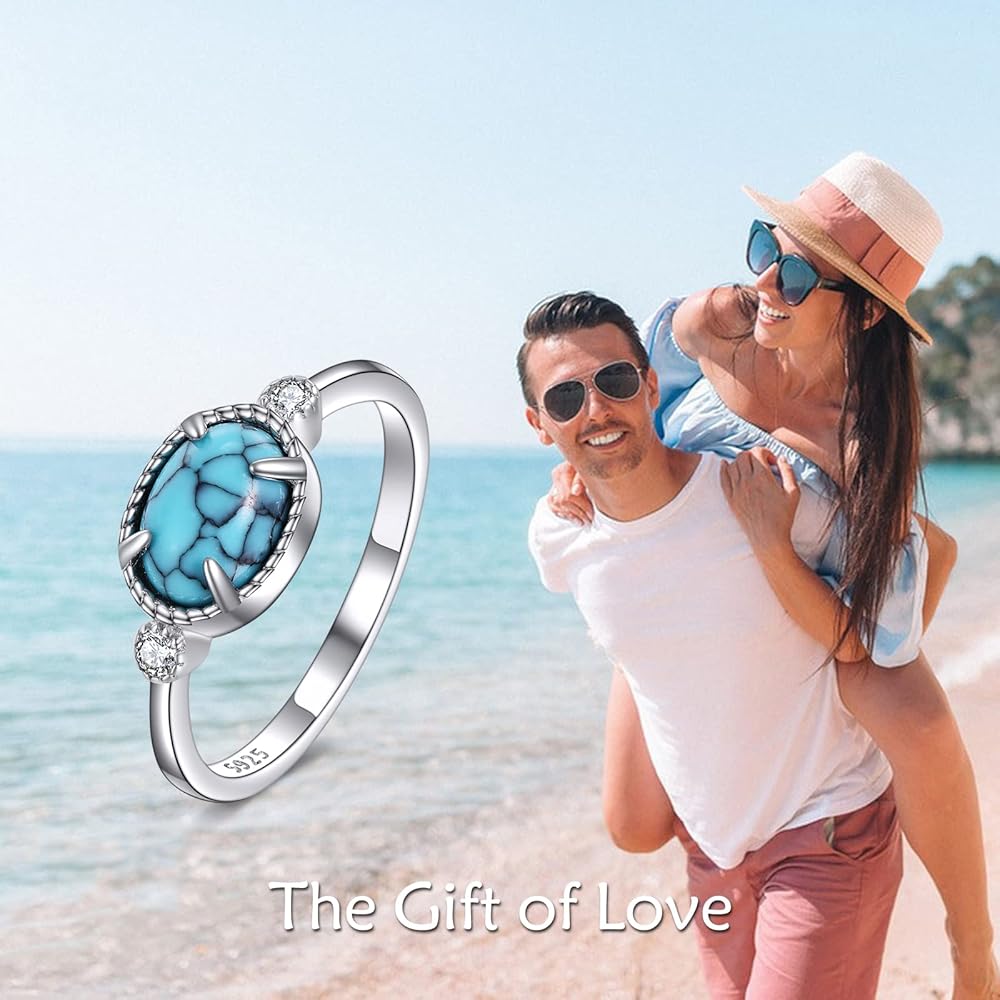 ⭐[فكرة التصميم] - الفيروز هو حجر ميلاد شهر ديسمبر ويشير إلى الحظ السعيد. ارتداء هذا الخاتم الفيروزي سيجلب الحظ السعيد لك ولعائلتك.