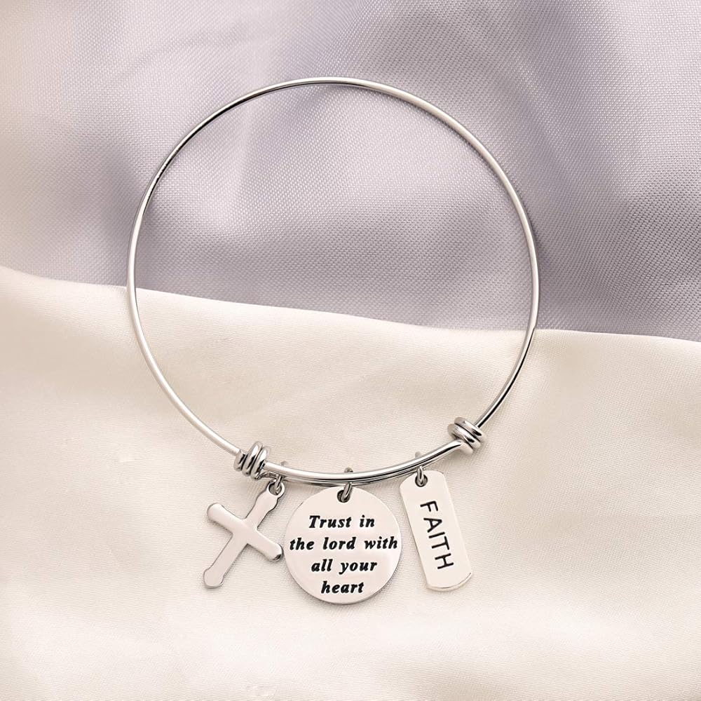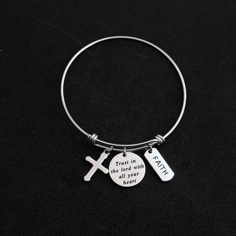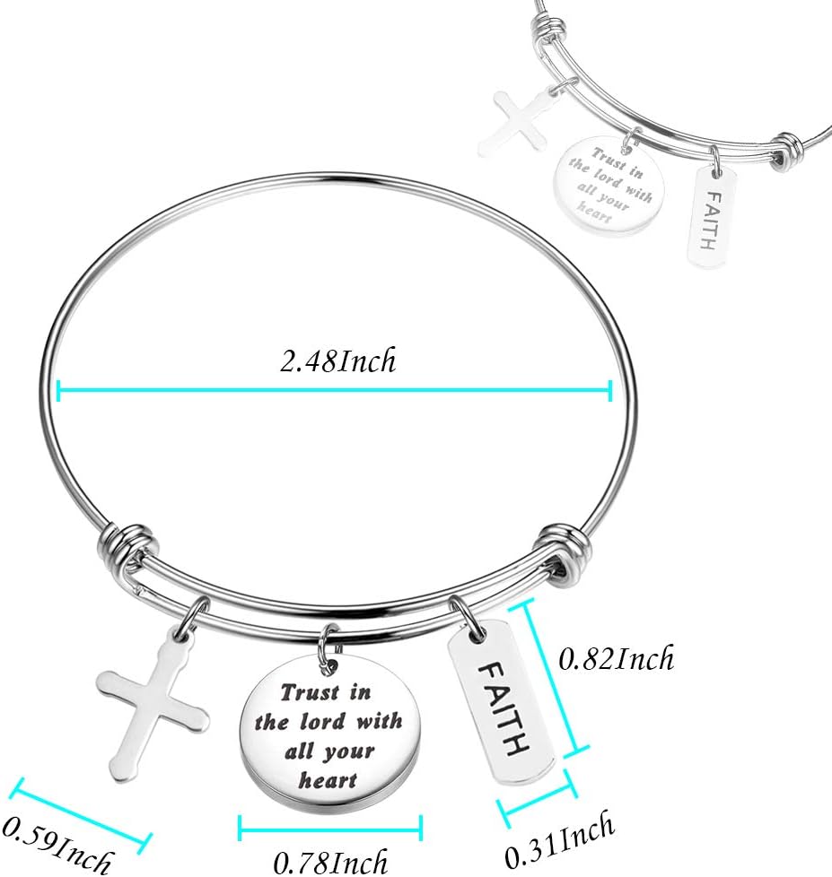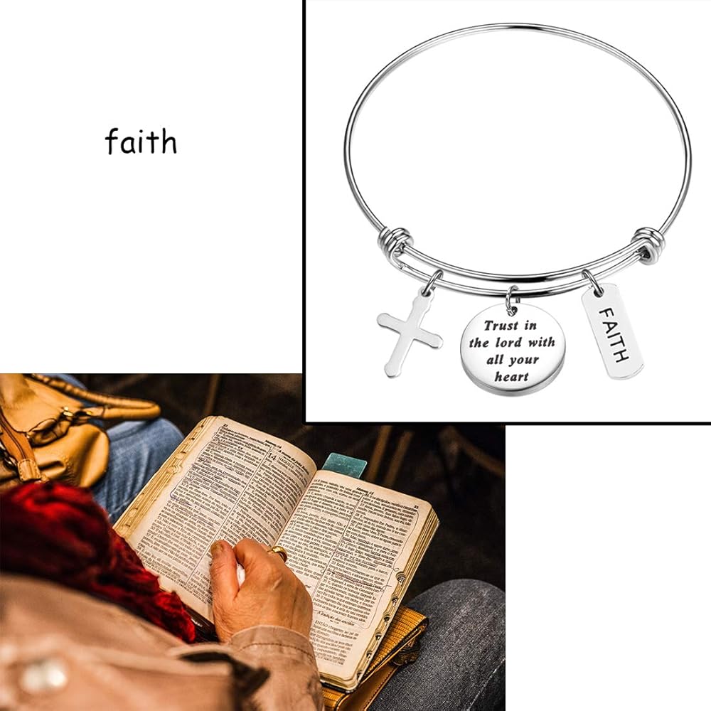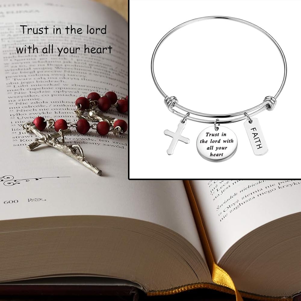 - سوار "ثق في الرب بكل قلبك" مع حليات الصليب والإيمان. الهدية المثالية لصديق أو أخت أو حفيدة أو ابنة أو ابنة أخ أو أم أو عمة أو أي شخص مميز في حياتك.