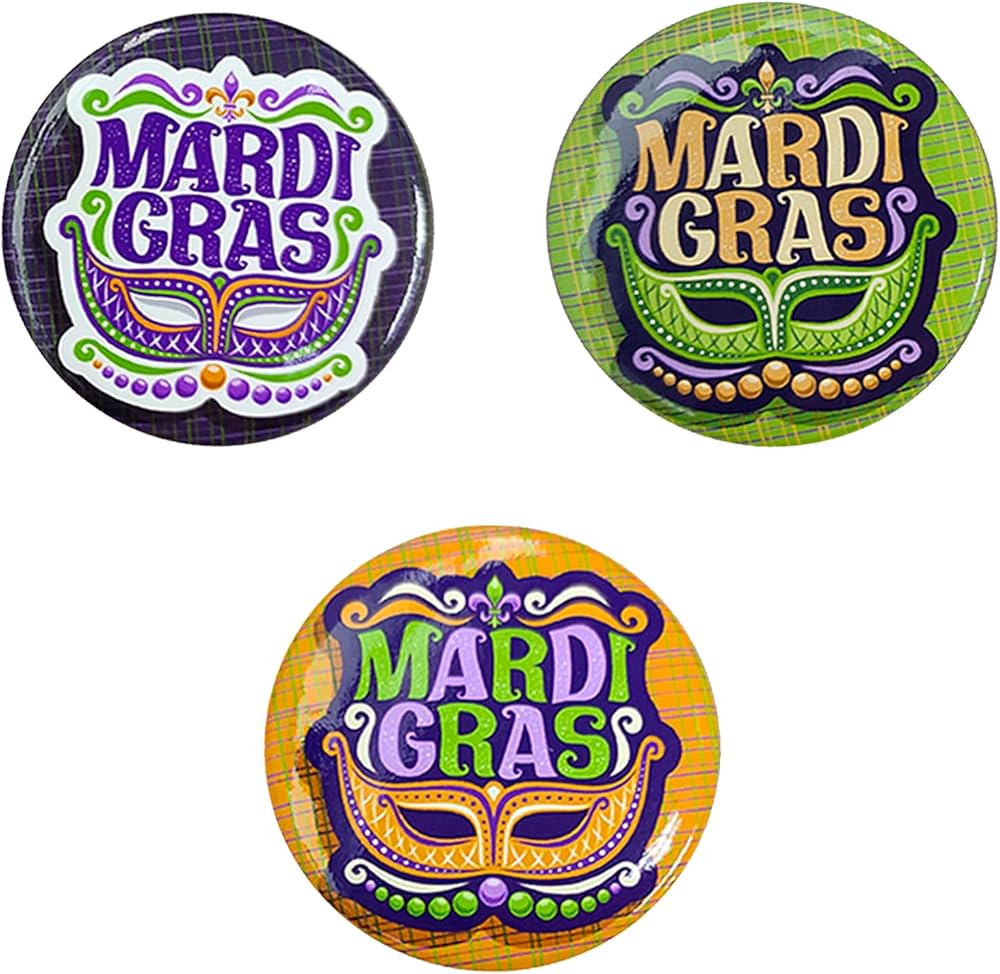تتضمن العبوة: سوف تحصل على 3 دبابيس شارة Mardi Gras. واحدة أرجوانية، وواحدة صفراء، وواحدة خضراء، وكل لون مشرق جميل. هناك دائمًا ما يناسبك وهو جيد بما يكفي لمشاركته مع أصدقائك.