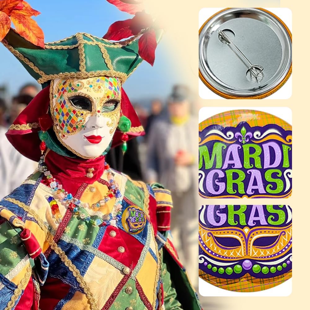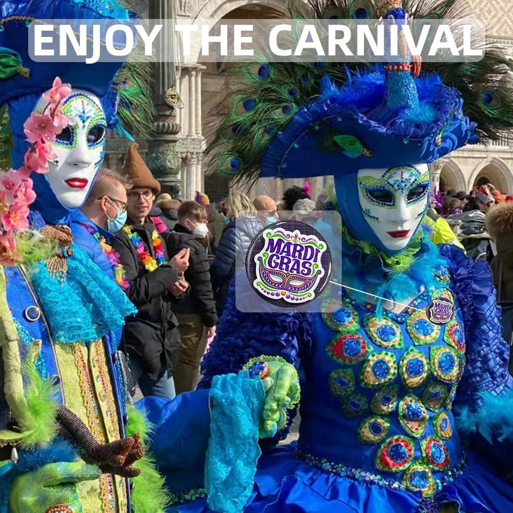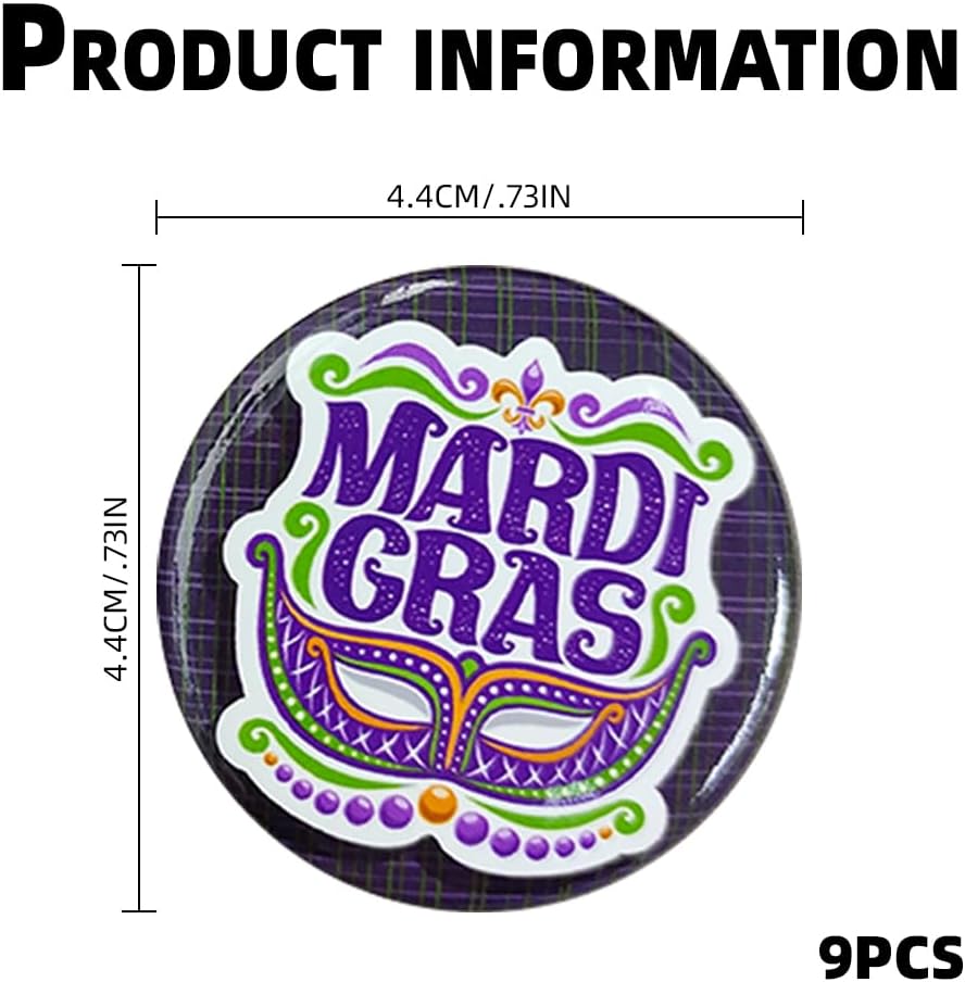 مواد عالية الجودة: كل شارة مستديرة من Mardi Gras مصنوعة من صفيح عالي الجودة، خفيفة الوزن ومريحة، ليس من السهل أن تتلاشى أو تصدأ، ليس من السهل كسرها، مستقرة وموثوقة، ومتينة، ويمكن ضمان الاستخدام طويل الأمد.