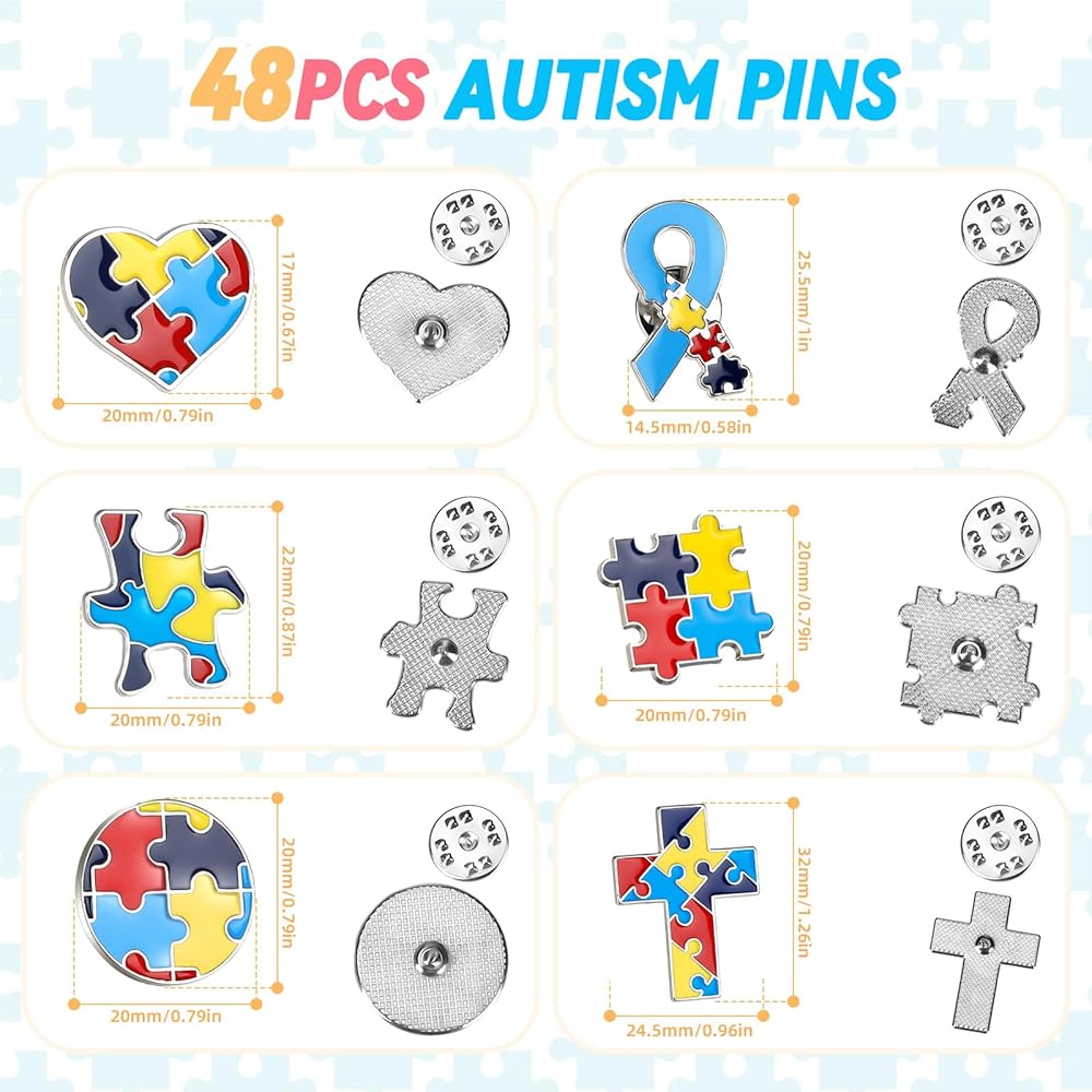 【Wide Application】: These autism pins can not only be used as chest badges, but also can be used on school bags, sleeves, hats, scarves, wristbands, etc., which can better attract people's attention.