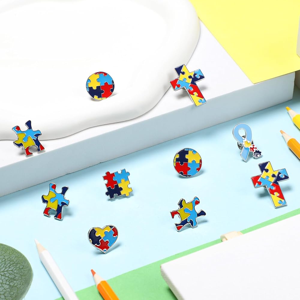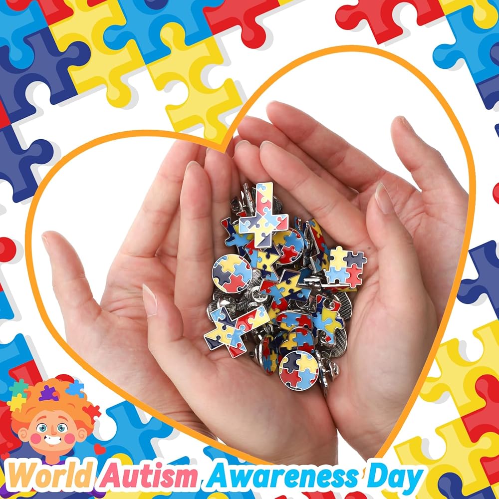 【Puzzle Pattern Design】: The autism awareness pin is designed with a puzzle pattern, with bright colors and vivid appearance. At the same time, it is matched with ribbons, hearts and other elements to better arouse the society's attention and care for autistic people.
