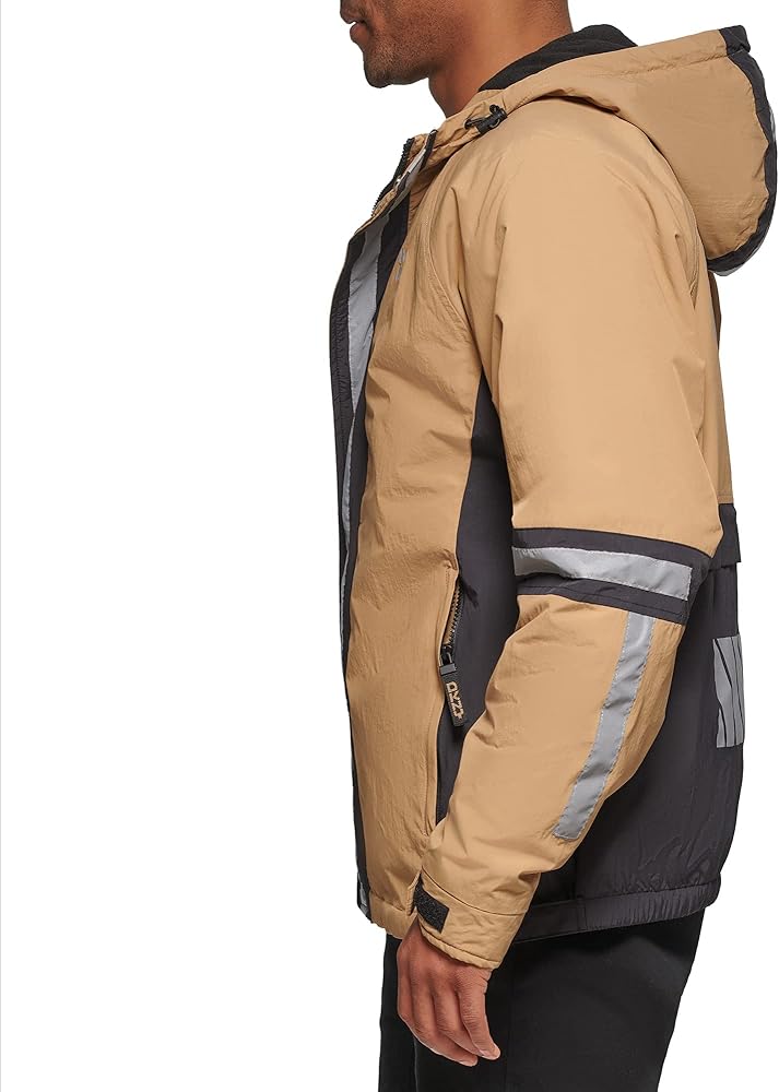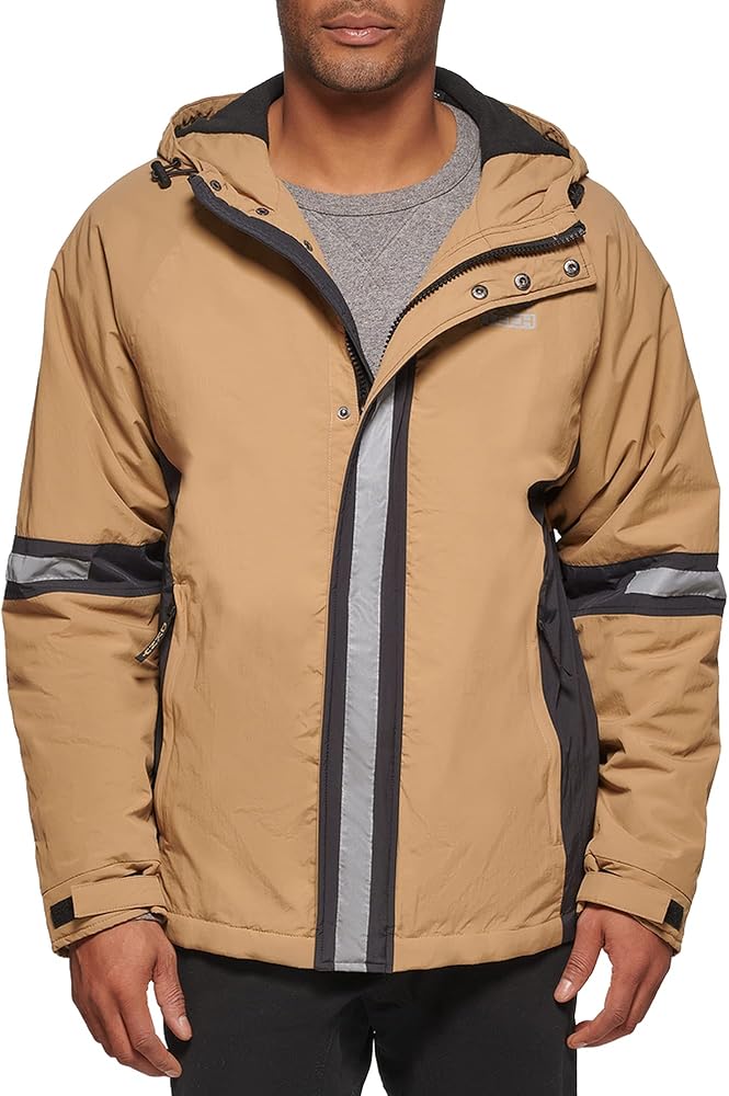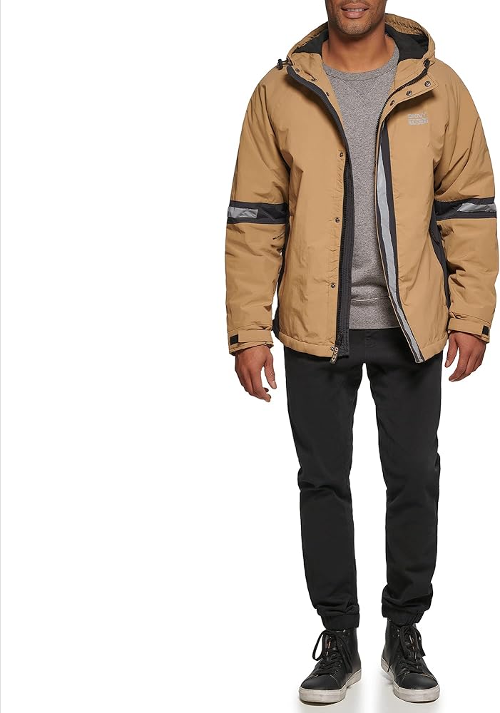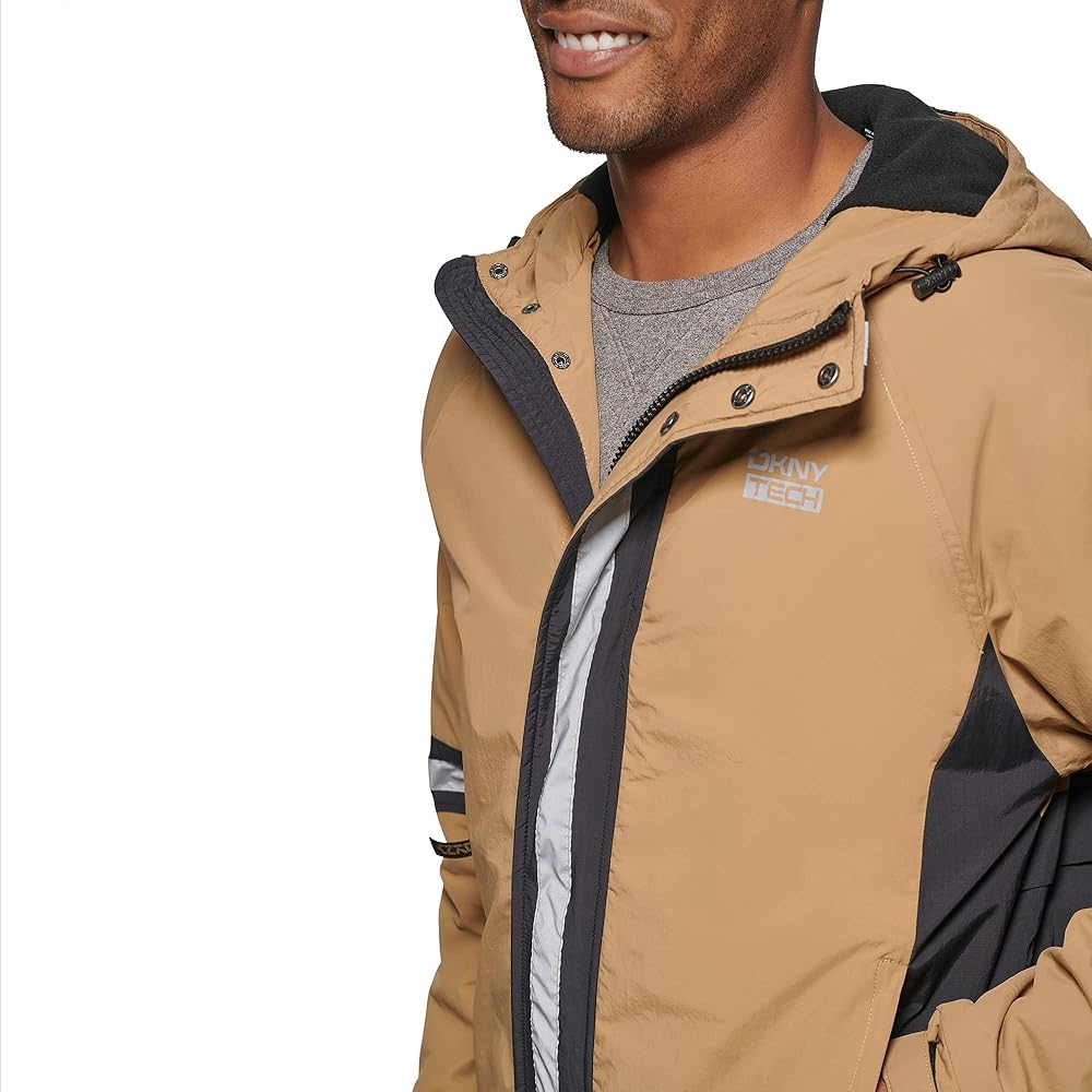 ارتقِ بأسلوبك إلى المستوى التالي مع تفاصيل التصميم العاكسة الموجودة في سترة DKNY العاكسة ذات القلنسوة