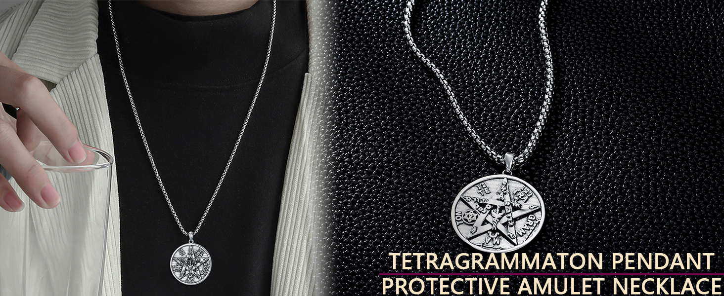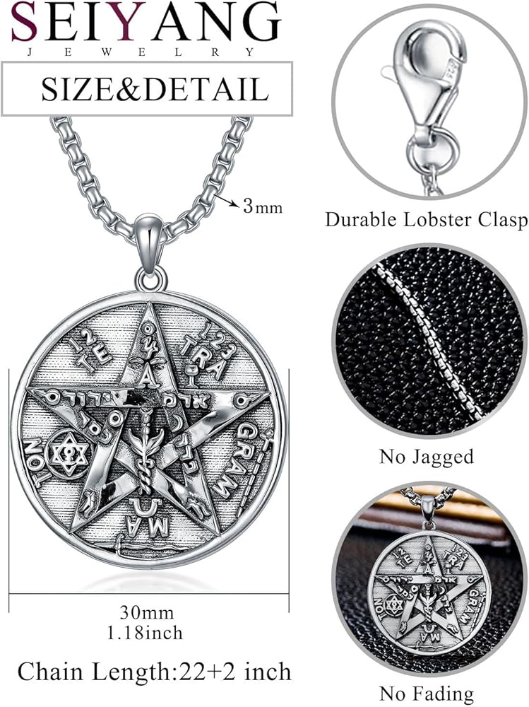 Seiyang 925 الفضة الاسترليني قلادة Tetragrammaton تميمة حماية هدية للرجال (مع صندوق هدية)