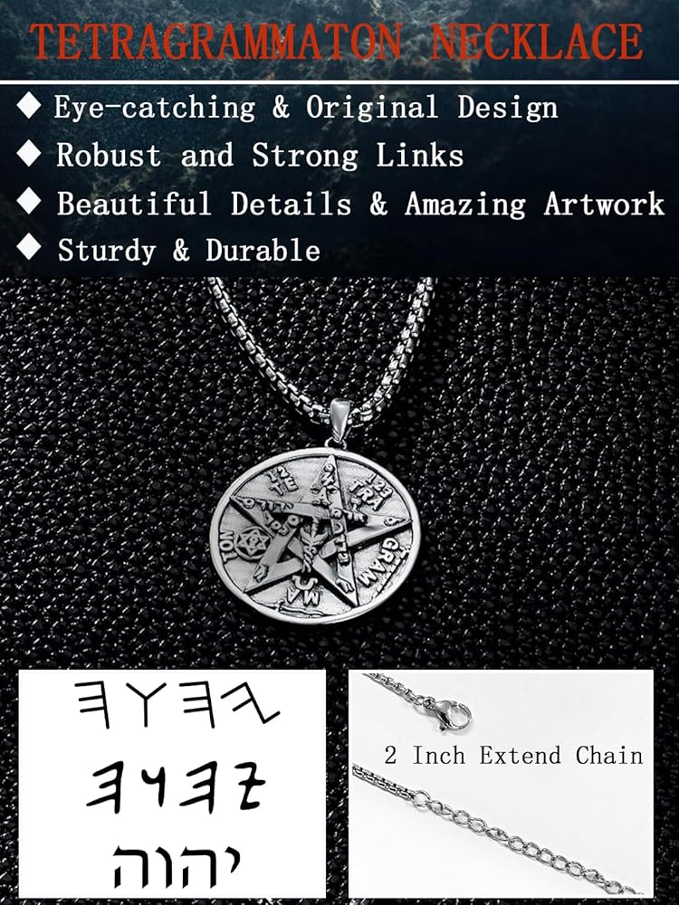 • 🤍التصميم🤍 Tetragrammaton من اليونانية القديمة، هو اسم الله في الكتاب المقدس العبري. الاسم مشتق من فعل يعني "أن يكون" أو "يوجد" أو "يسبب أن يصبح" أو "يحدث". لذا فإن قلادة تميمة Tetragrammaton لها تأثير وقائي قوي.
