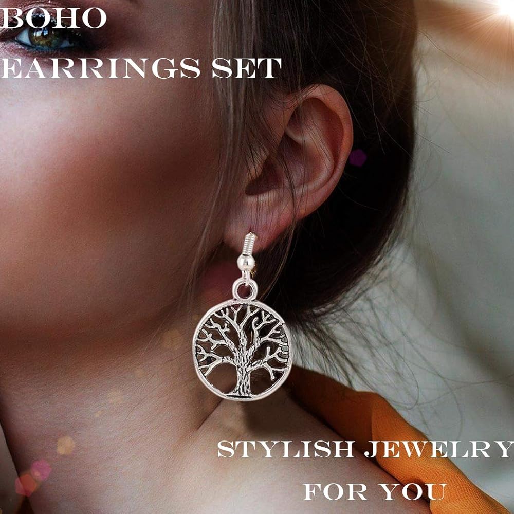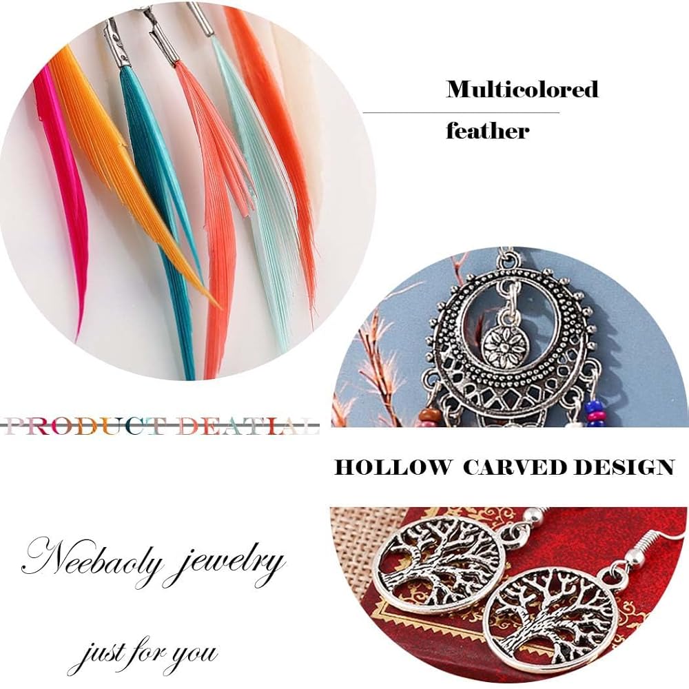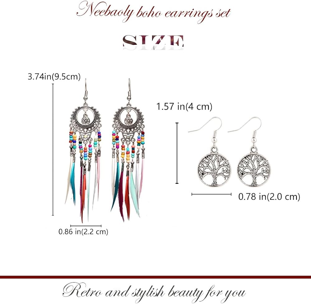 Boho Earrings Set - multicolor bead bohemian earring with cute colorful bead and feather tassel,vintage silver life