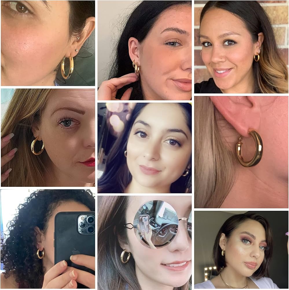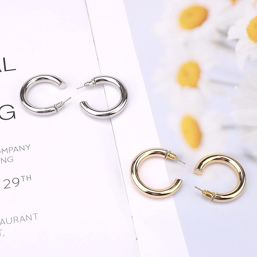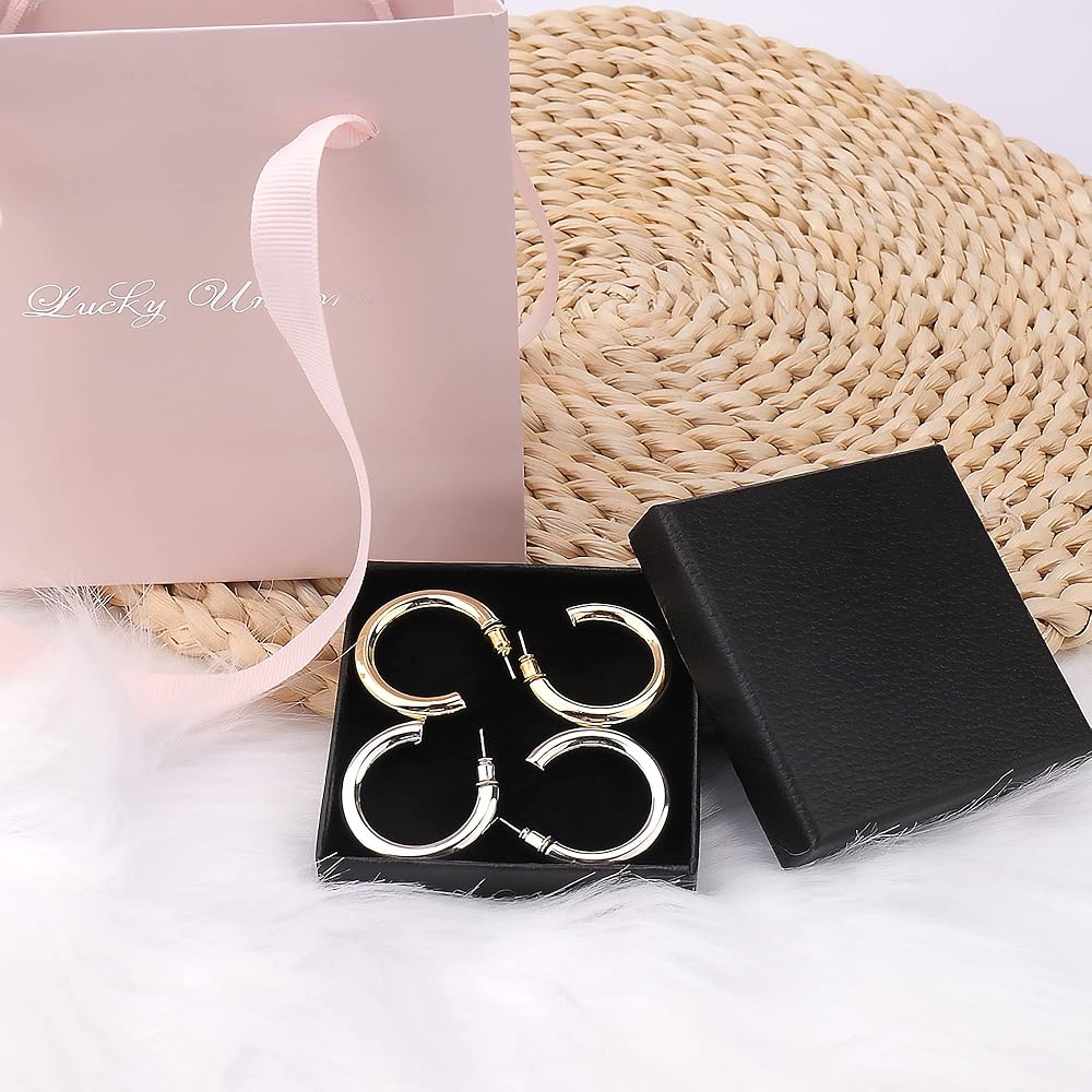 2 Pairs Chunky Gold Hoop Earrings for Women Teen Girls
