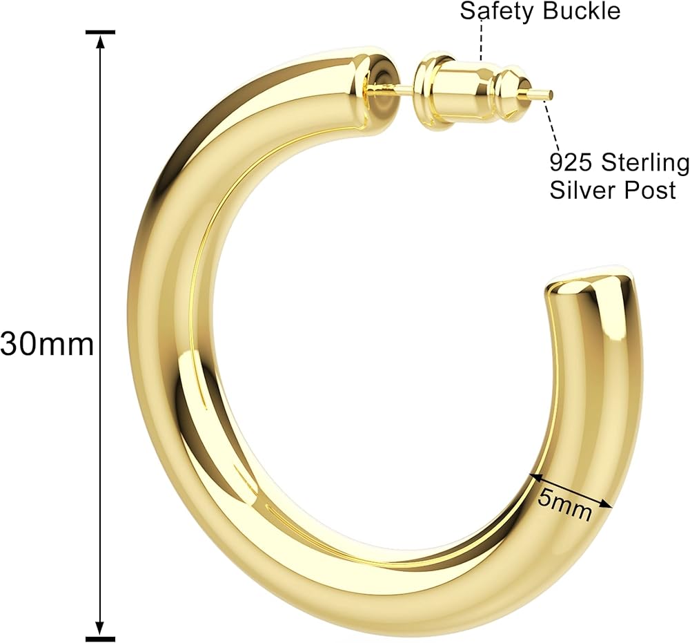 Hoop Earrings Sets: 2 Pairs of hoop earrings, 1 pair of 14K gold-plated hoop earrings and 1 pair of silver-plated hoop earrings, only 30 mm in size, lightweight,convenient and very comfortable to wear in daily life