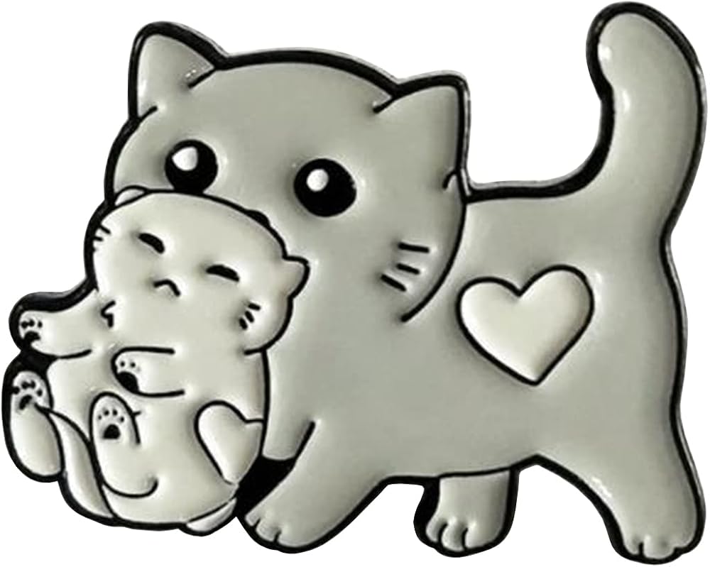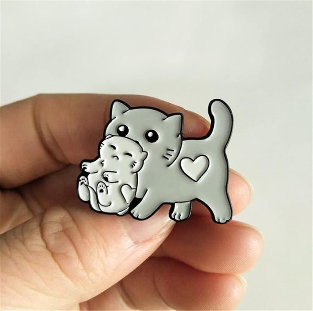 Grey Cat Holding Doll Enamel Brooch Pin Cute Enamel Pins