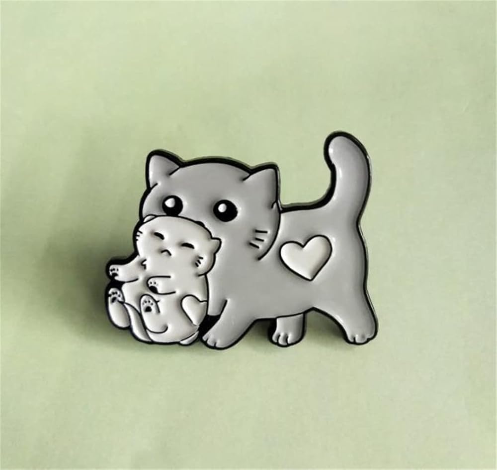 Cartoon Animal Brooch Pin Grey Cat Holding Doll Enamel Brooch Lapel Pin Badge Funny Bag Accessories Badge For Girls Women, Alloy Steel, no gemstone