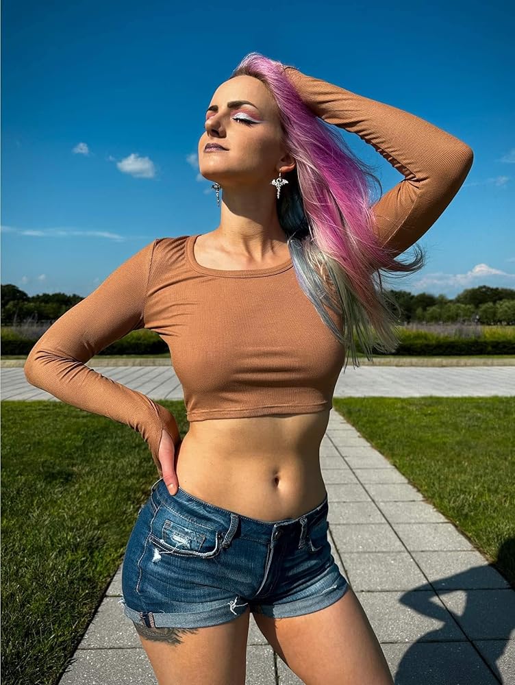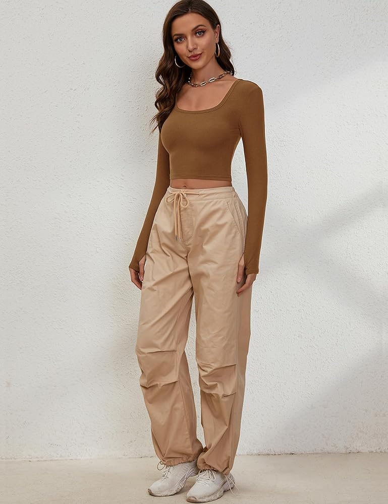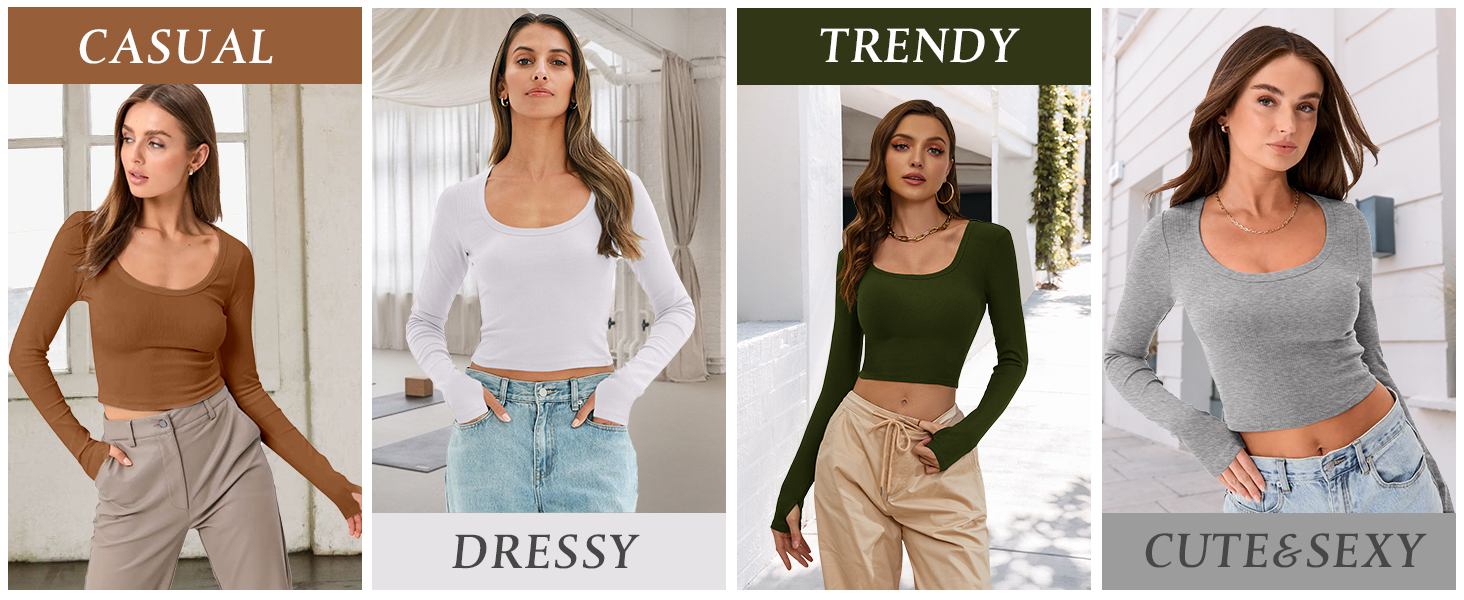 ❤[المميزات] رقبة واسعة، فتحة إبهام، قمصان قصيرة مثيرة بأكمام طويلة، طراز كاجوال ورفيع، يحتضن منحنياتك بشكل مثالي وجذاب. تصميم فتحة الإبهام يمنع الأكمام من التدحرج لأعلى، وهو التصميم الحالي، عملي جدًا وعصري.