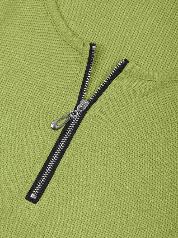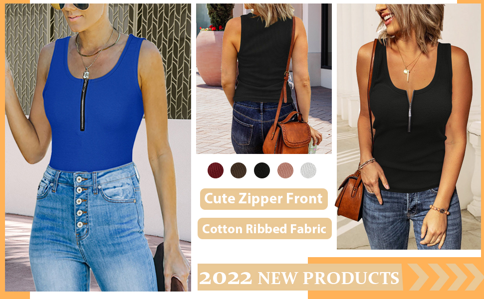 ♥ Unique Design--This cute summer tops for teen girls features scoop neck,solid color, functional zipper front, regular length, slim fit,covers bra straps.