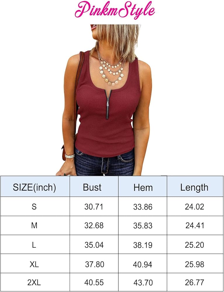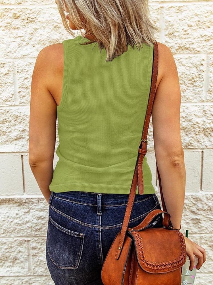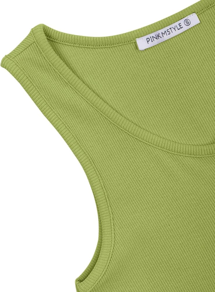 PINKMSTYLE Women's Ribbed Sleeveless Shirts Blouse Sexy Slim Fitted Scoop Neck Tank Tops.