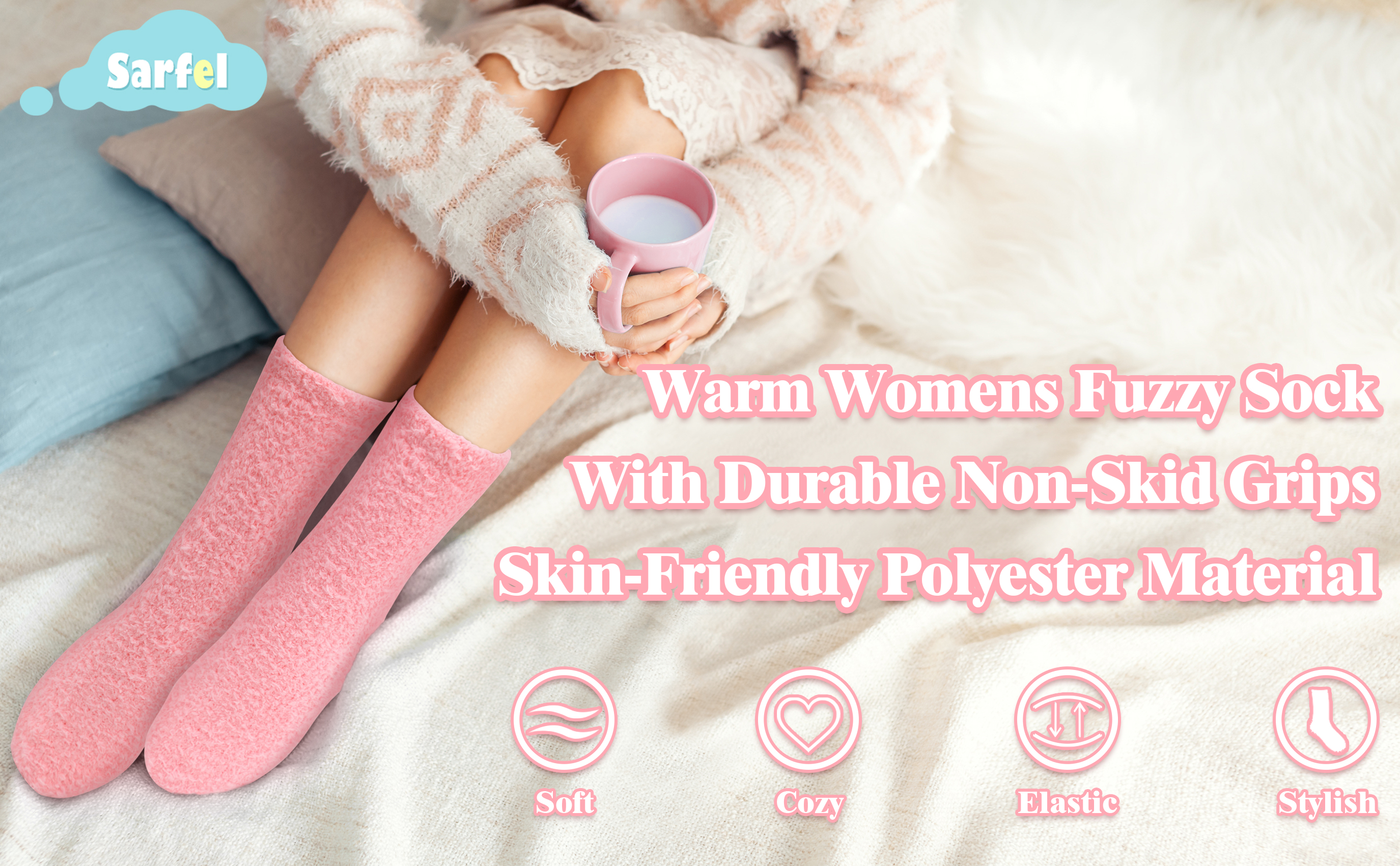 مادة دافئة ومريحة: جواربنا النسائية مصنوعة من البوليستر عالي الجودة، وهو ناعم ودافئ ومريح. السُمك المعتدل رائع للارتداء أثناء النوم، مما يحافظ على دفء قدميك في الشتاء البارد. يمكن للنسيج الصديق للبشرة للجوارب الرقيقة أن يوفر لك شعورًا بالراحة.
