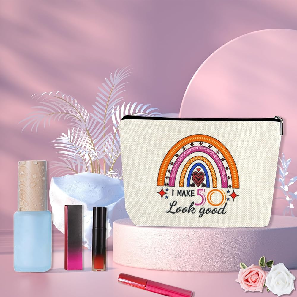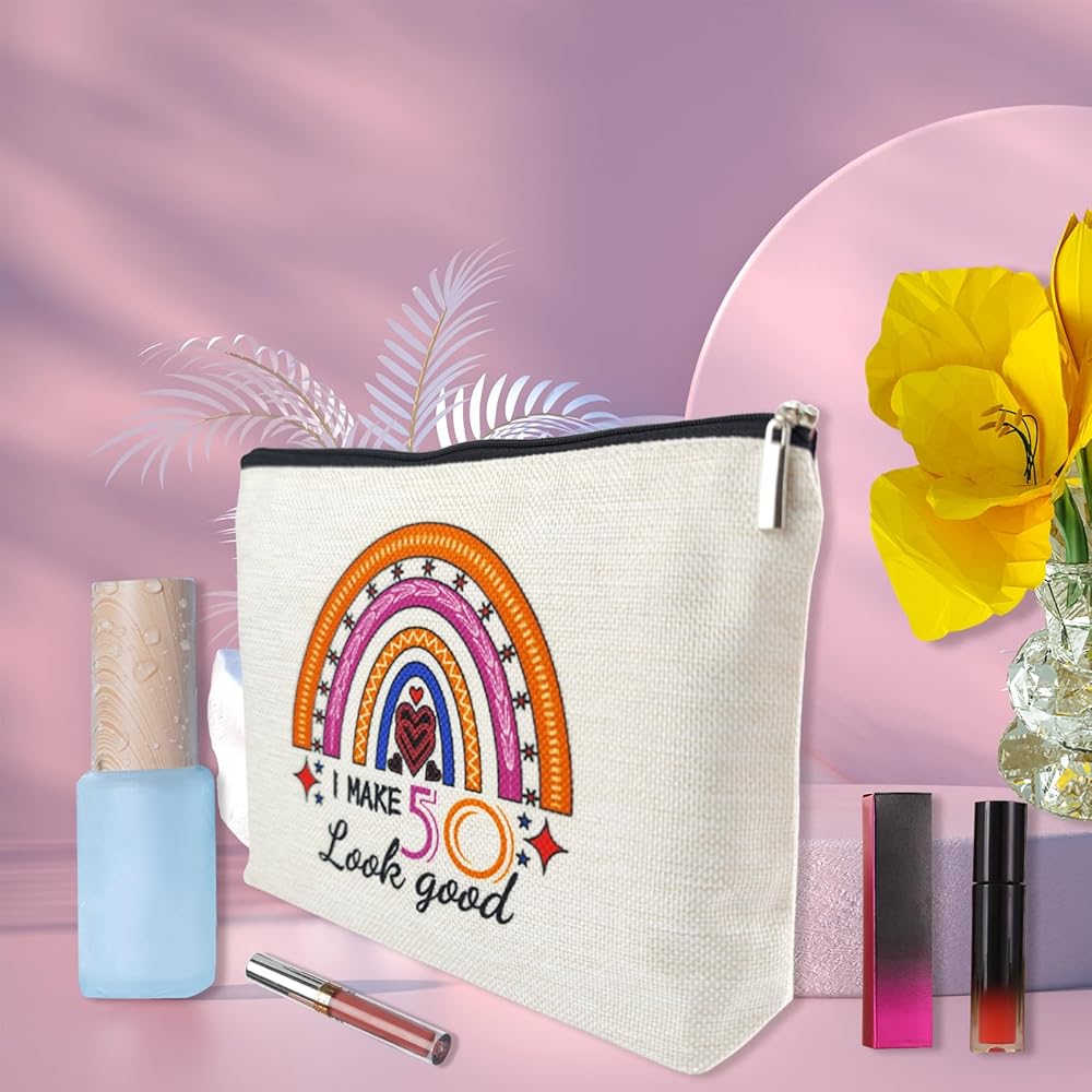 زينة عيد الميلاد الخمسين للسيدات، حقيبة مكياج مضحكة لهدايا عيد الميلاد الخمسين لعام 1973، أفكار هدايا للذكرى السنوية 50 عامًا لها، الزوجة، الأخت، الأم، العمة، حقائب سفر مستحضرات التجميل الصغيرة لعيد الأم