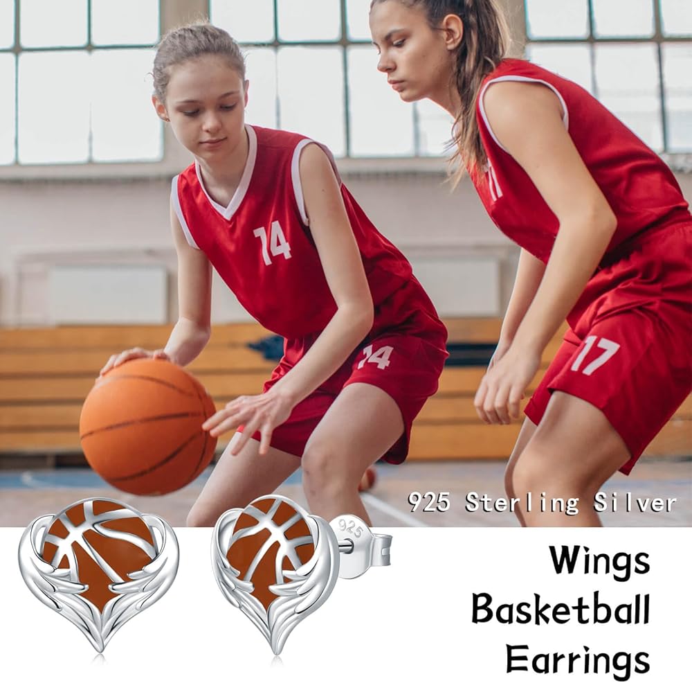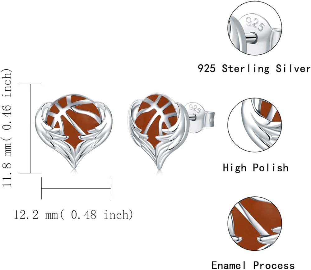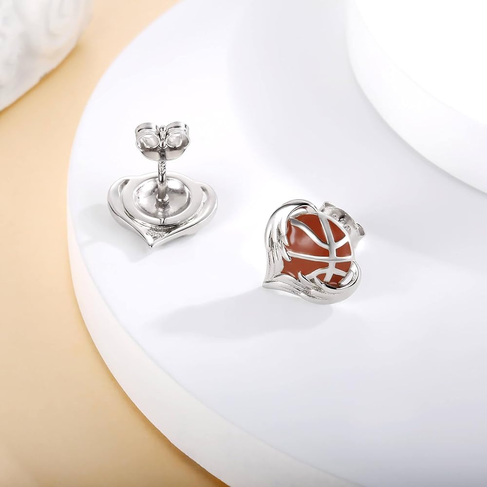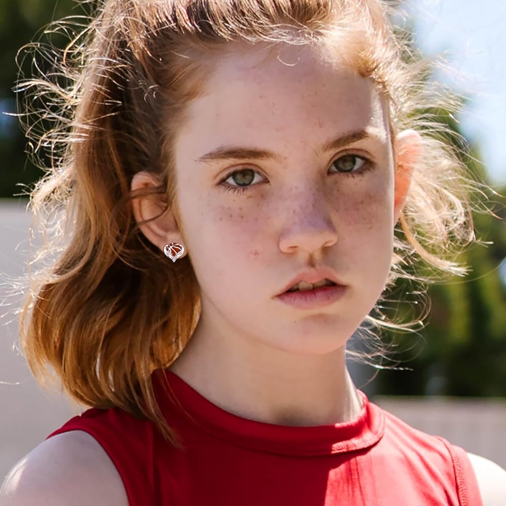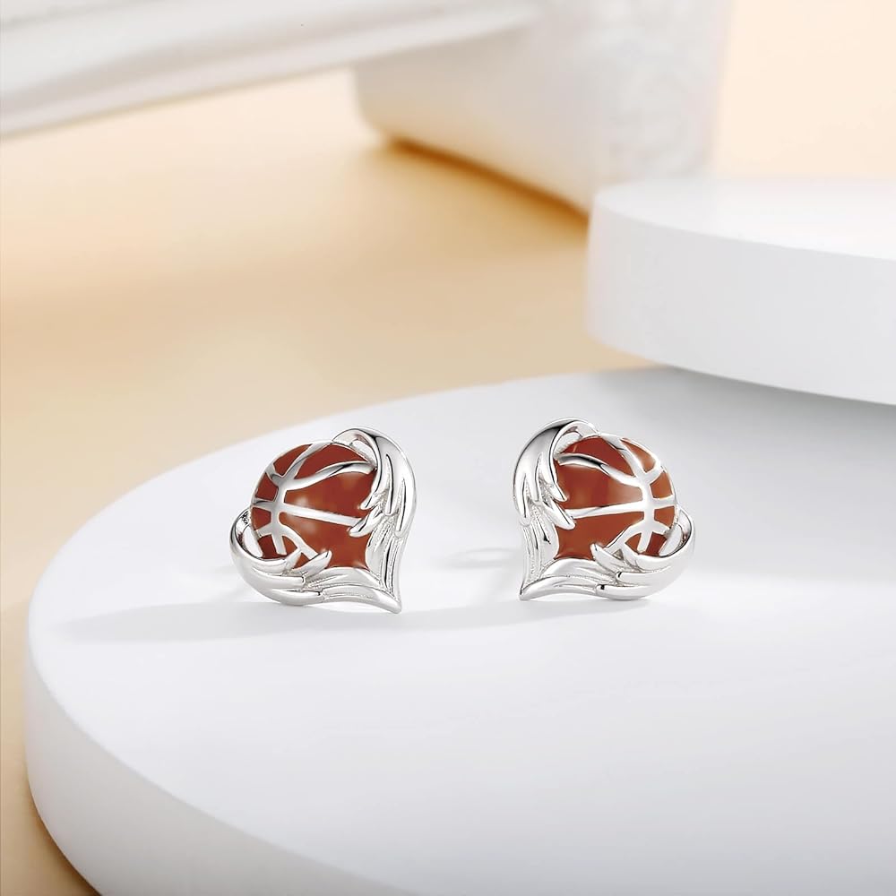 925 Sterling Silver Sports Earrings - Softball Volleyball Stud with Heart Ball Freeh Call Straining Hypoallergenic Jewelry Disting Higds for Women Player Fans