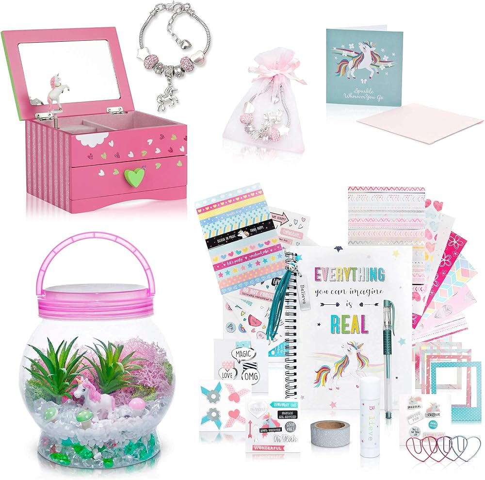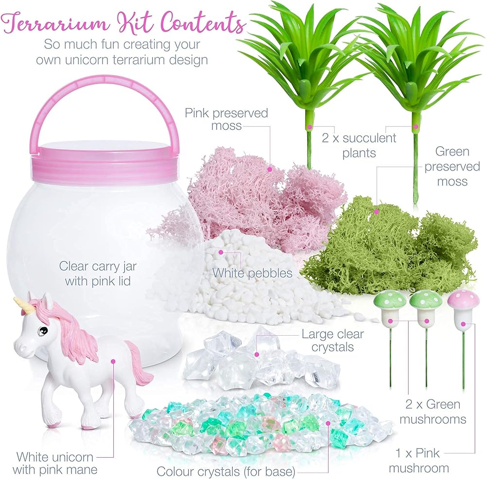 2. DIY UNICORN TERRARIUM KIT: أطلق العنان لخيال طفلك وإبداعه مع حديقة يونيكورن السحرية الخاصة به. تم تصميم مجموعة حوض الأطفال هذه خصيصًا للفتيات في الاعتبار وتحتوي على جميع الميزات الخاصة التي تحبها الفتيات الصغيرات! يمكنها تصميم حديقتها بأي طريقة تريدها، باستخدام البلورات اللامعة والفطر المصغر وبالطبع وحيد القرن اللطيف للغاية. يحتوي الغطاء الوردي الجميل على ضوء LED مدمج يحول التررم إلى ضوء ليلي سحري.
