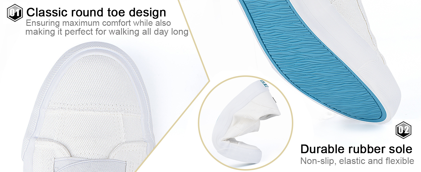 تصميم بدون أربطة: يساعد الشريط المطاطي الموجود على لسان الحذاء القماشي على ارتدائه وخلعه بسهولة. مقدمة دائرية، مواد مطاطية، بدون ربطة عنق، مما يمنحها ملاءمة مريحة ومريحة، وخفيفة الوزن وأنيقة للارتداء الكاجوال