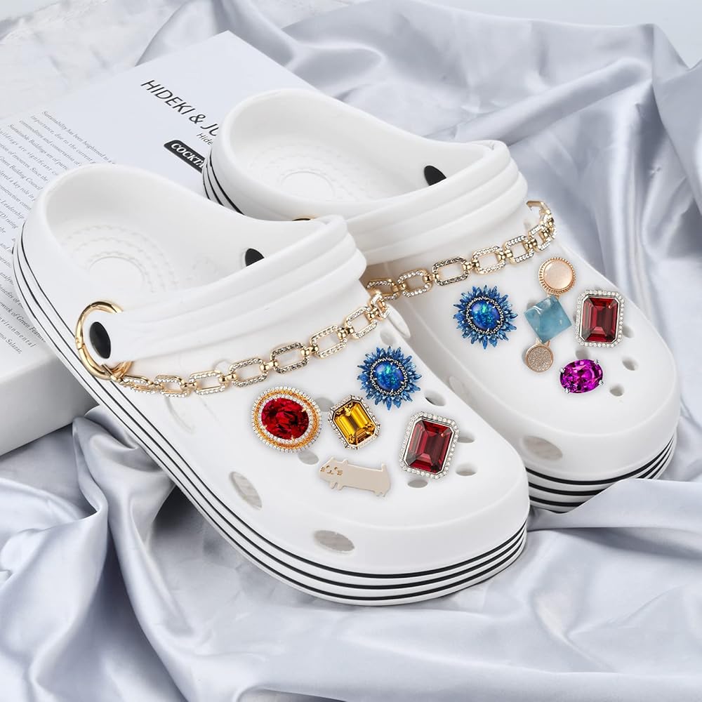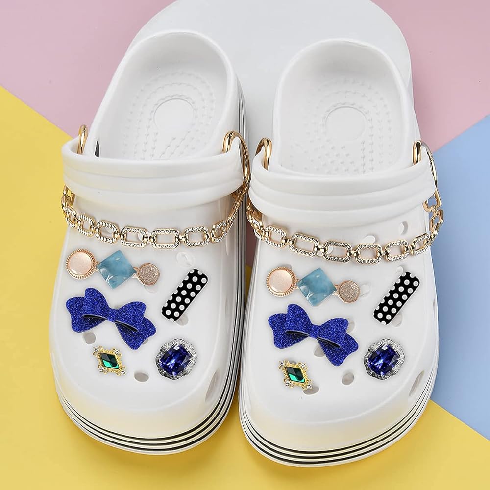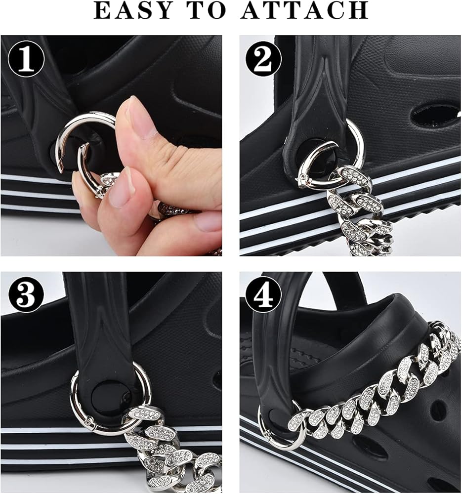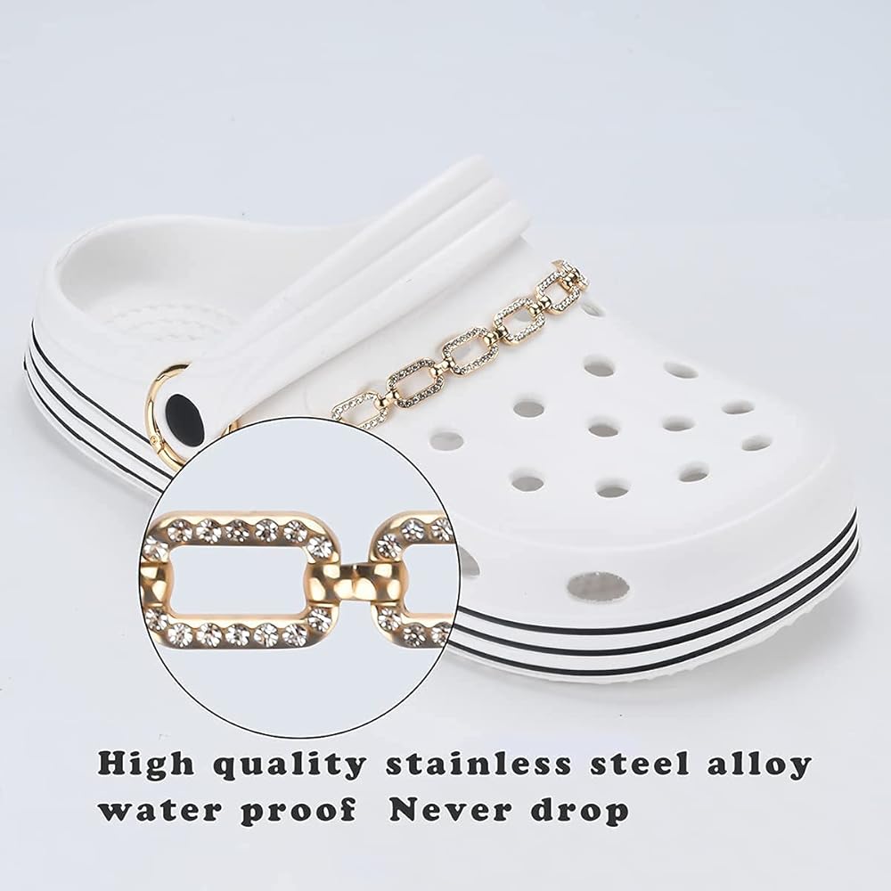 تناسب Croc وPunk: هذه السلاسل السميكة والمتينة رائعة لتزيين الأحذية ذات القبقاب للرجال والنساء، والسطح مرصع بالعديد من الكريستالات الجميلة التي ستجعل حذائك جينزًا وحقيبة "روك" وبلينج بلينج.