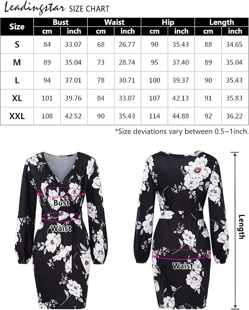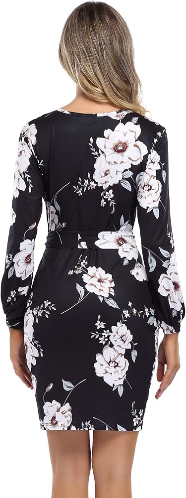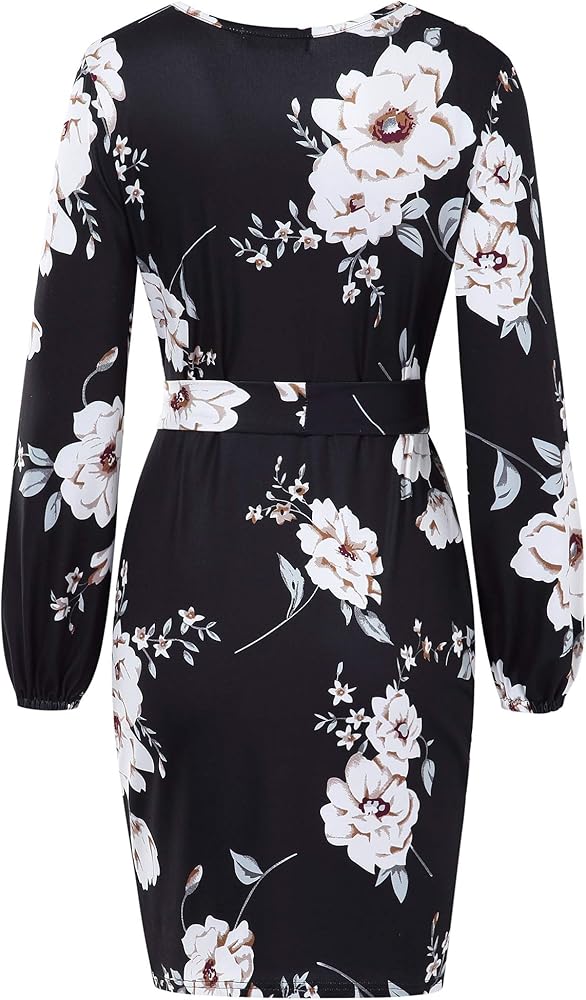 💟【STYLE】 Women Mini Dress, Lantern Long Sleeve, Surplice V-Neck, High Waist, Plain, Solid, Floral,Color, Multicolor, Vintage,Slim, Tie Waist , Bodycon Wrap Dress