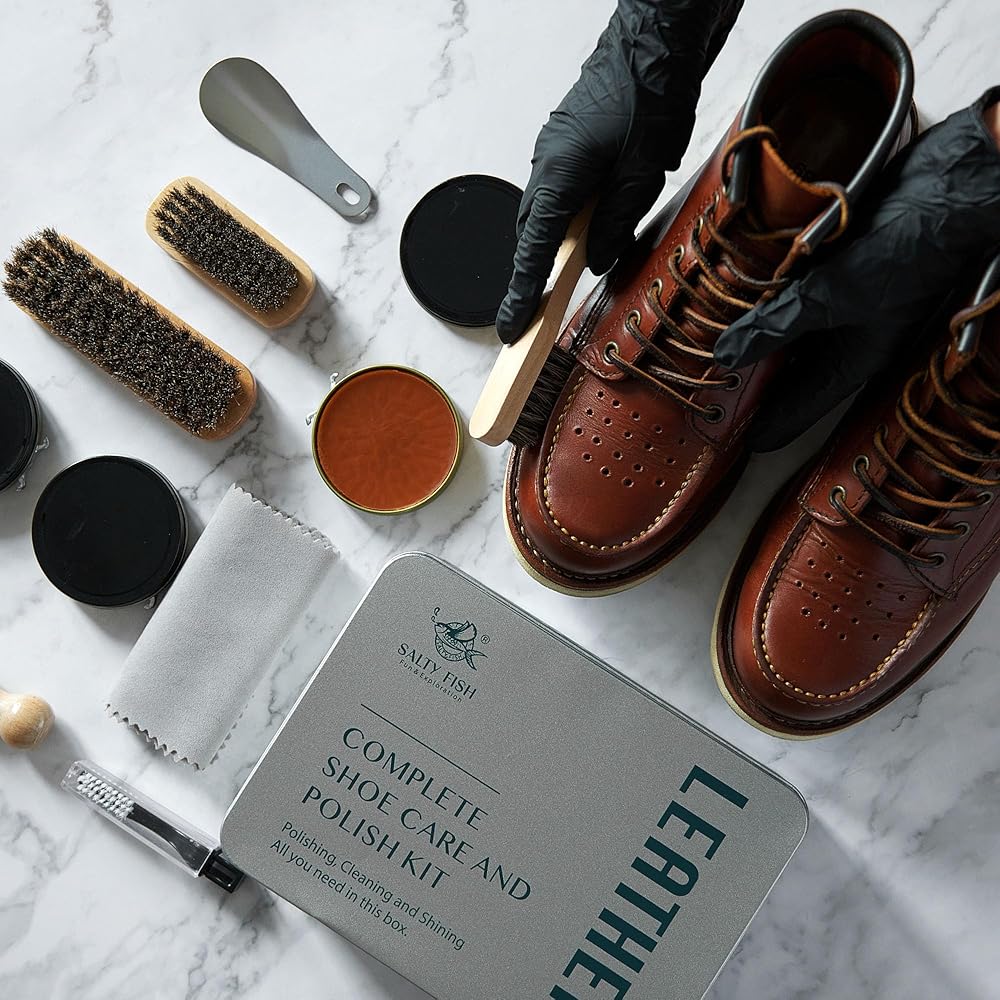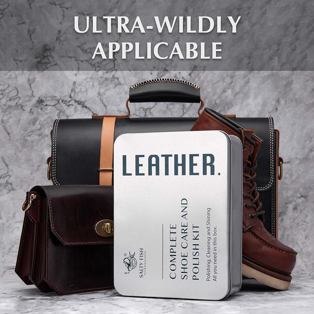 الكل في واحد للعناية بالأحذية العائلية: منقذ الأحذية لجميع أفراد الأسرة في مجموعة واحدة. الوظائف المختلفة لفرشاة الأحذية تجعل من السهل تنظيف أي مادة. إن ملمع الأحذية الخاص بنا غني بالزيت والشموع الطبيعية التي تعمل على الترطيب والتلميع. احصل على نتائج أفضل مع بلسم الجلد بزيت المنك من SALTY FISH لإعادة حذائك إلى الحياة وإطالة عمر أغراضك الجلدية لعقود من الزمن.