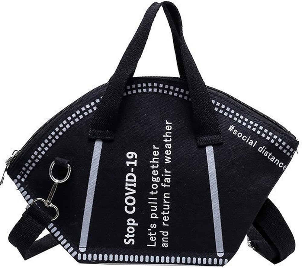 3 Features: Unique folded mask shaped design with the word stop covid-19 printed on it, stylish and fashion. With a smooth zipper, and reflective strips. Designed with the hope of defeating the epidemic. 3 ways to carry it: top handle/single shoulder/shopping bag. Convenient zipper closure, unique and trendy large capacity shoulder bag for work or for daily use.