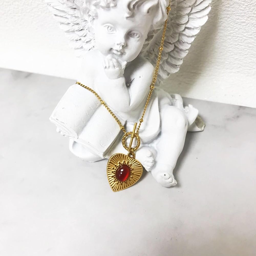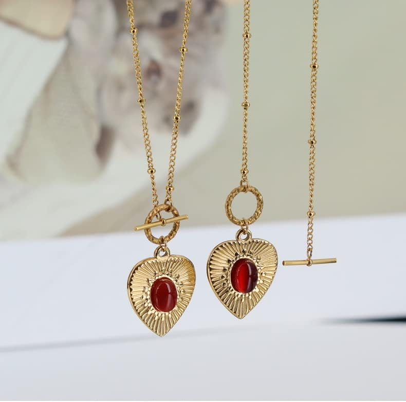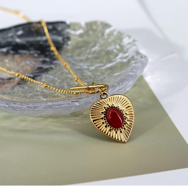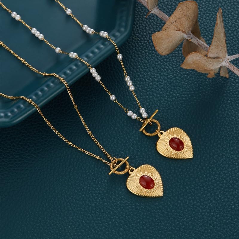 بالنسبة لرومانسية القلب، تتميز قلادة Heart Token بمركز من العقيق الأحمر على قلادة على شكل قلب مع نقش بزوغ الشمس. السلسلة الرفيعة المطلية بالذهب عيار 18 مزينة بلآلئ المياه العذبة المتباعدة. مغرية ليلا ونهارا.