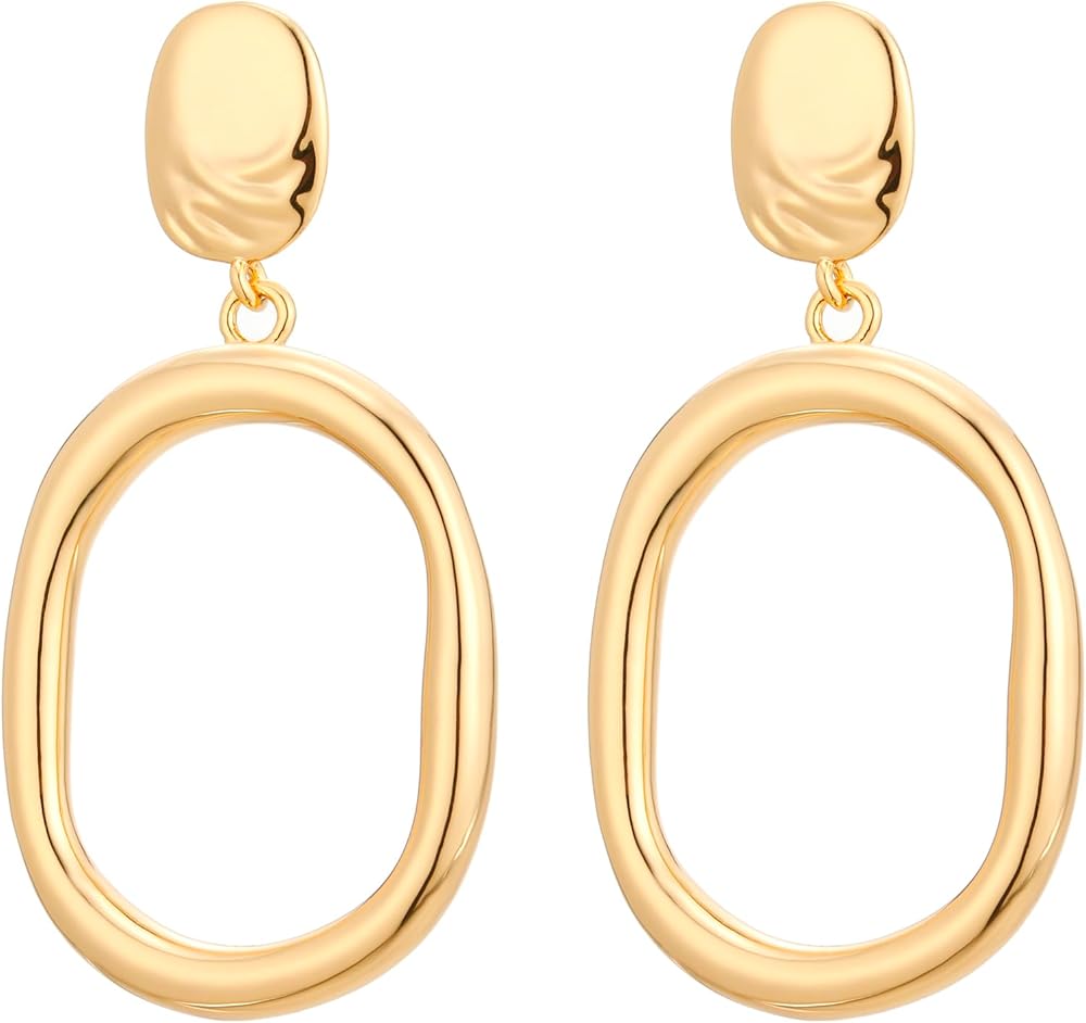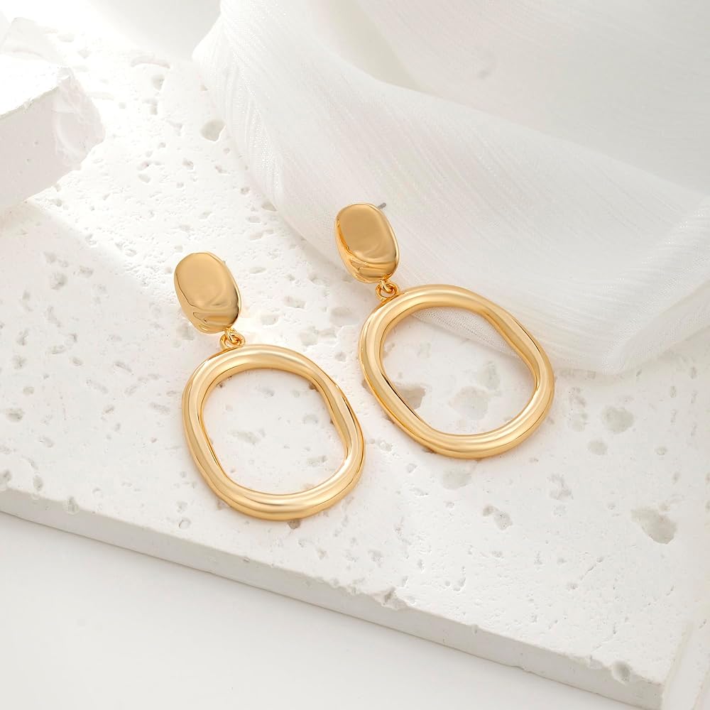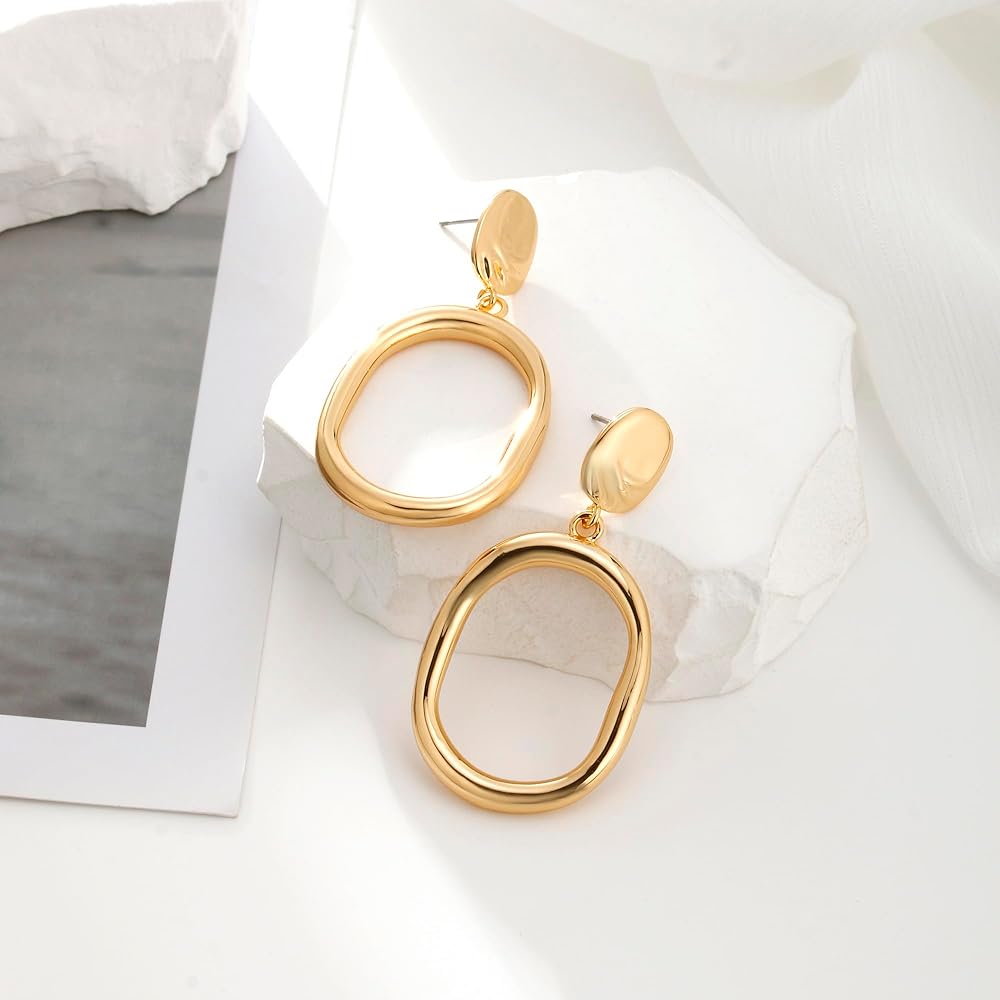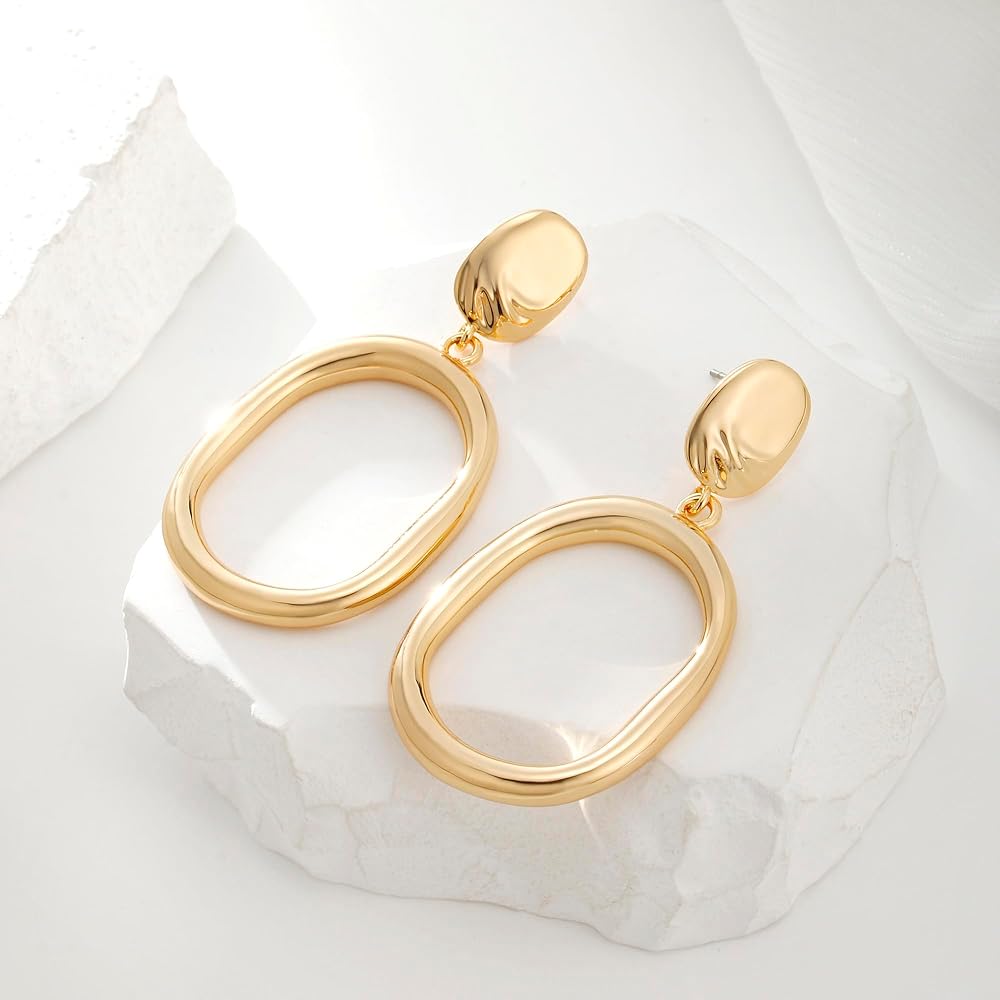 أقراط متدلية ذهبية خفيفة الوزن على شكل دائرة بيضاوية أقراط بيان للنساء والفتيات
