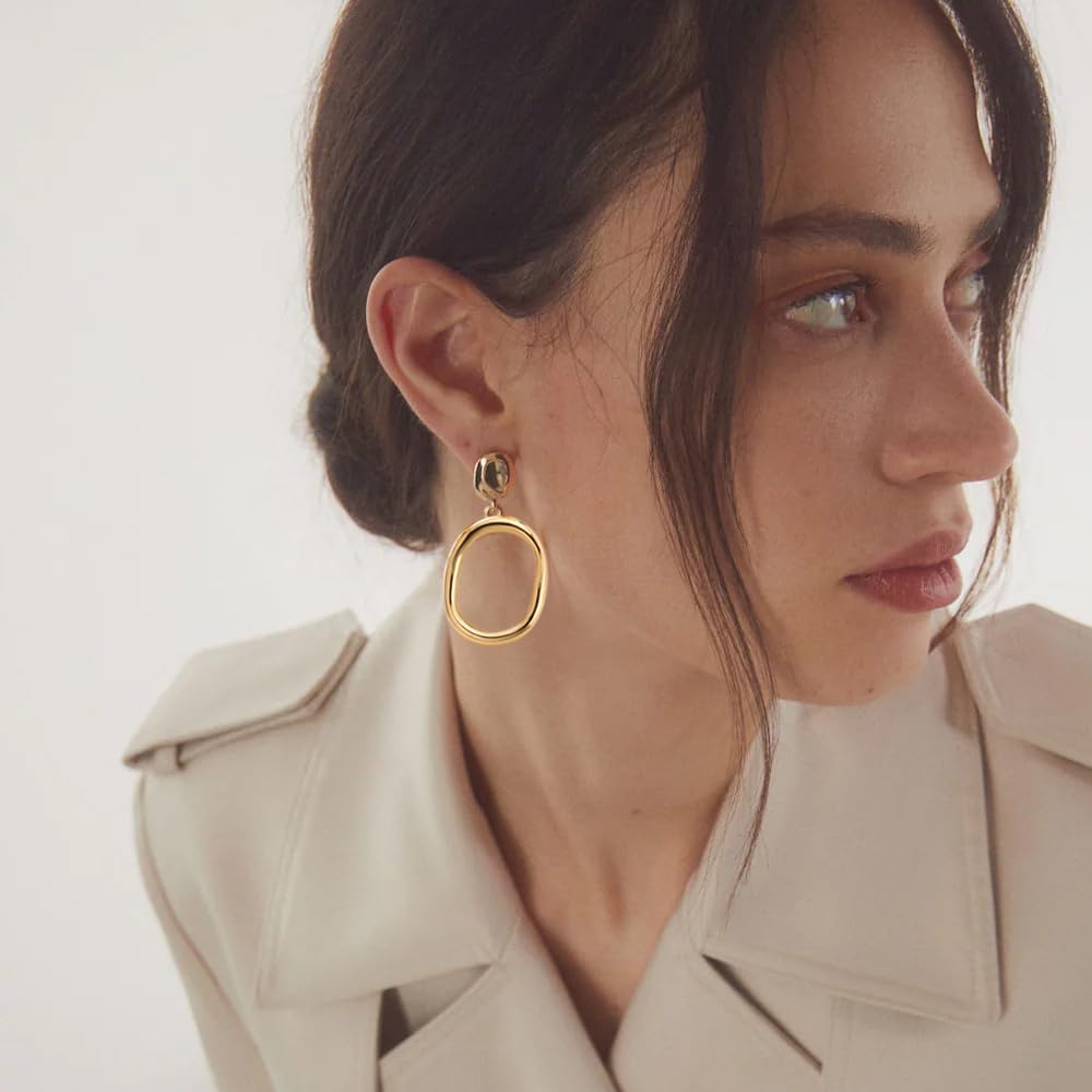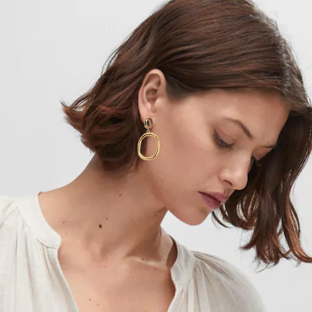 مريحة في الارتداء: الأقراط الذهبية المتدلية مجوفة على الجانب العكسي، مما يجعلها أخف وزنًا، ومصقولة بالنحاس عالي الجودة، واللون مشرق ومتين؛ خالية من الرصاص وخالية من النيكل.
