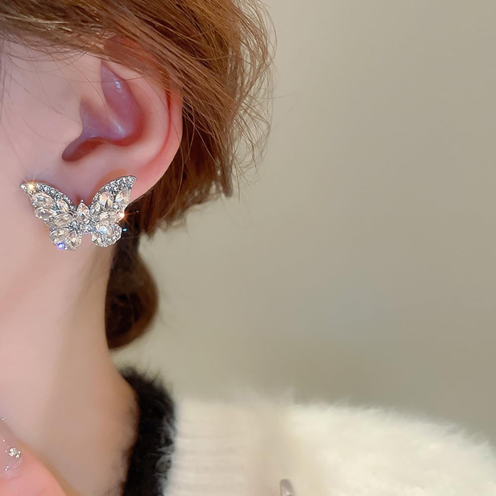 Vcagirest Sparkling Diamond Butterfly Earrings Rhinestone Stud for Women Crystal Silver Statement Earrings for Girls Party Wedding Bridal Prom Party Jewelry Gifts